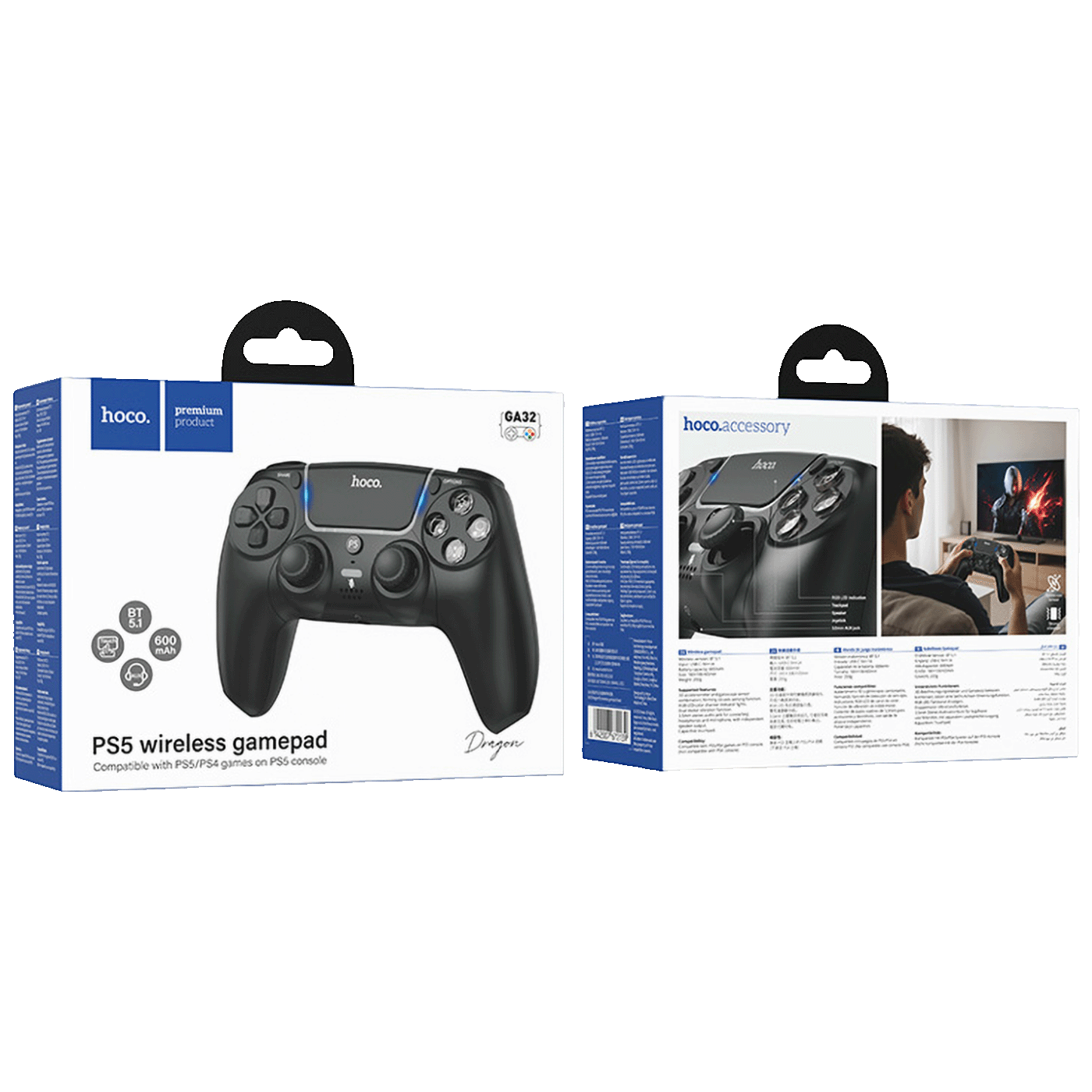 Hoco GA32 bežični gamepad za PS5 je moderan bežični kontroler dizajniran za udobno i uzbudljivo igranje na PlayStation 5 konzoli. Njegov ergonomski dizajn, precizne kontrole i dodatne funkcije osiguravaju maksimalnu udobnost čak i tokom dugih gaming sesija.