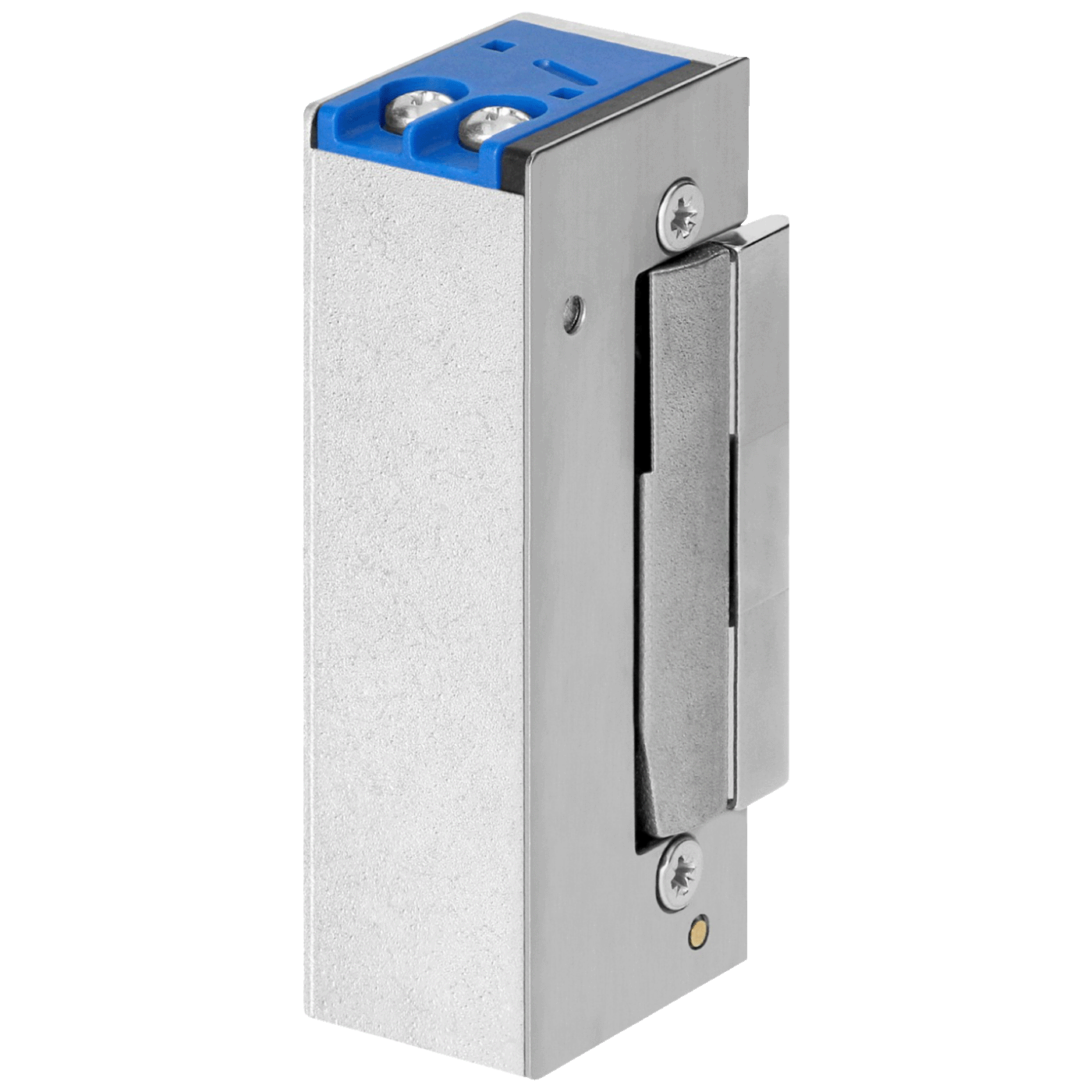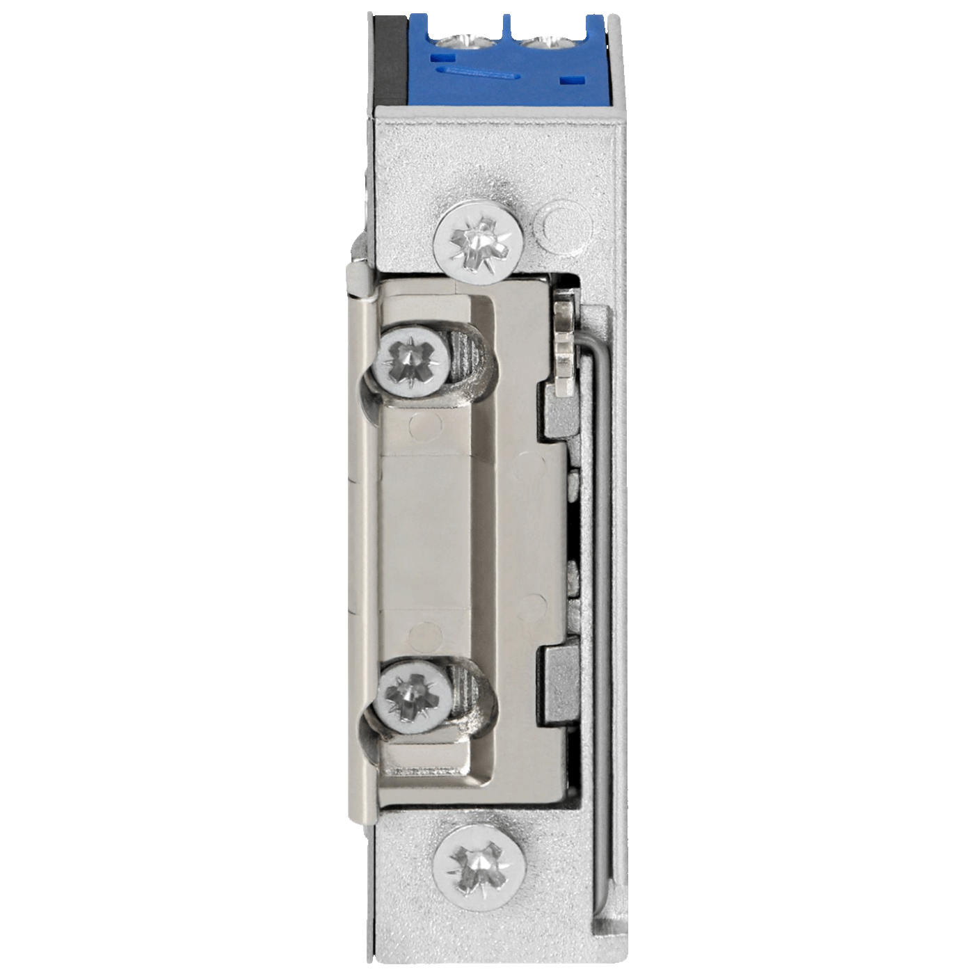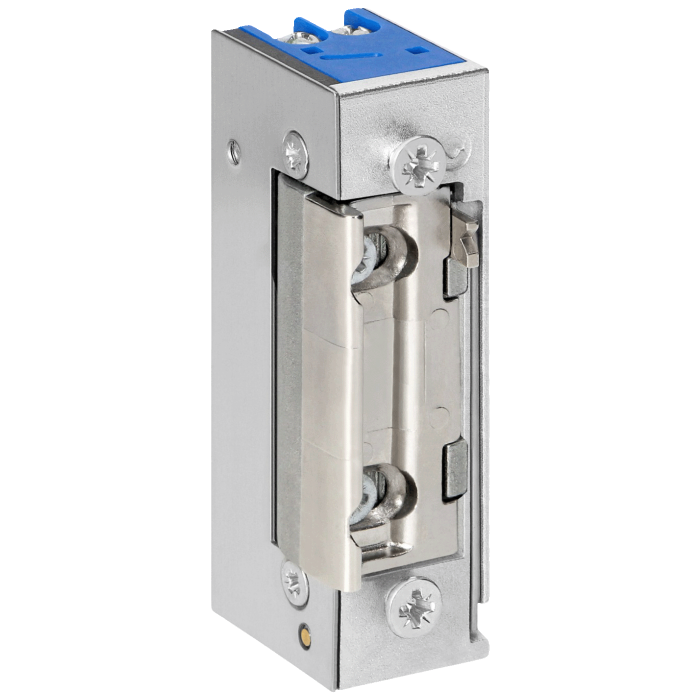 Simetrični električni prihvatnik sa memorijom prilagođen za oba smjera otvaranja vrata (desno/lijevo). Podesivi jezičak omogućava prilagođavanje različitim vrstama vrata i okvira.