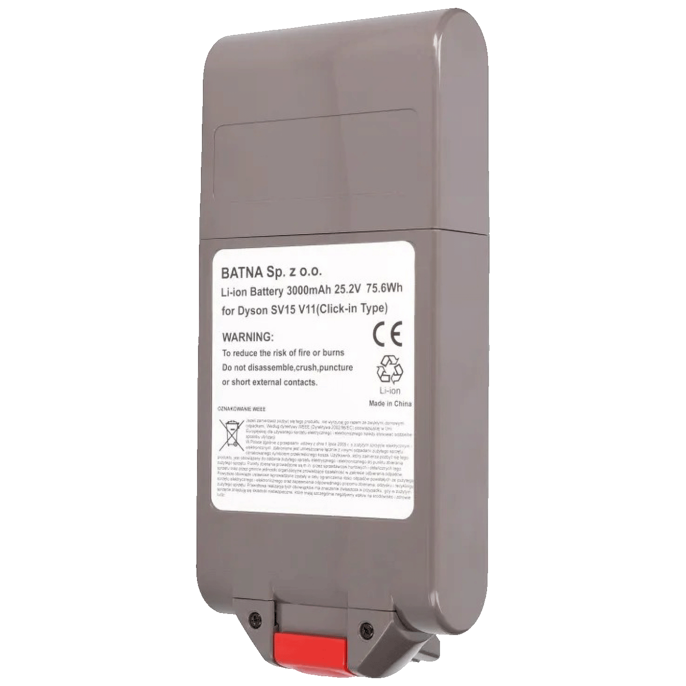 Zamjenska baterija za Dyson V11 usisavače s praktičnim click-in sistemom omogućava brzo i jednostavno uklanjanje i zamjenu bez potrebe za dodatnim alatom. Kapacitet od 3000 mAh i napon od 25.2V osiguravaju snažno i stabilno napajanje, čime se produžava vrijeme rada i poboljšava efikasnost čišćenja.