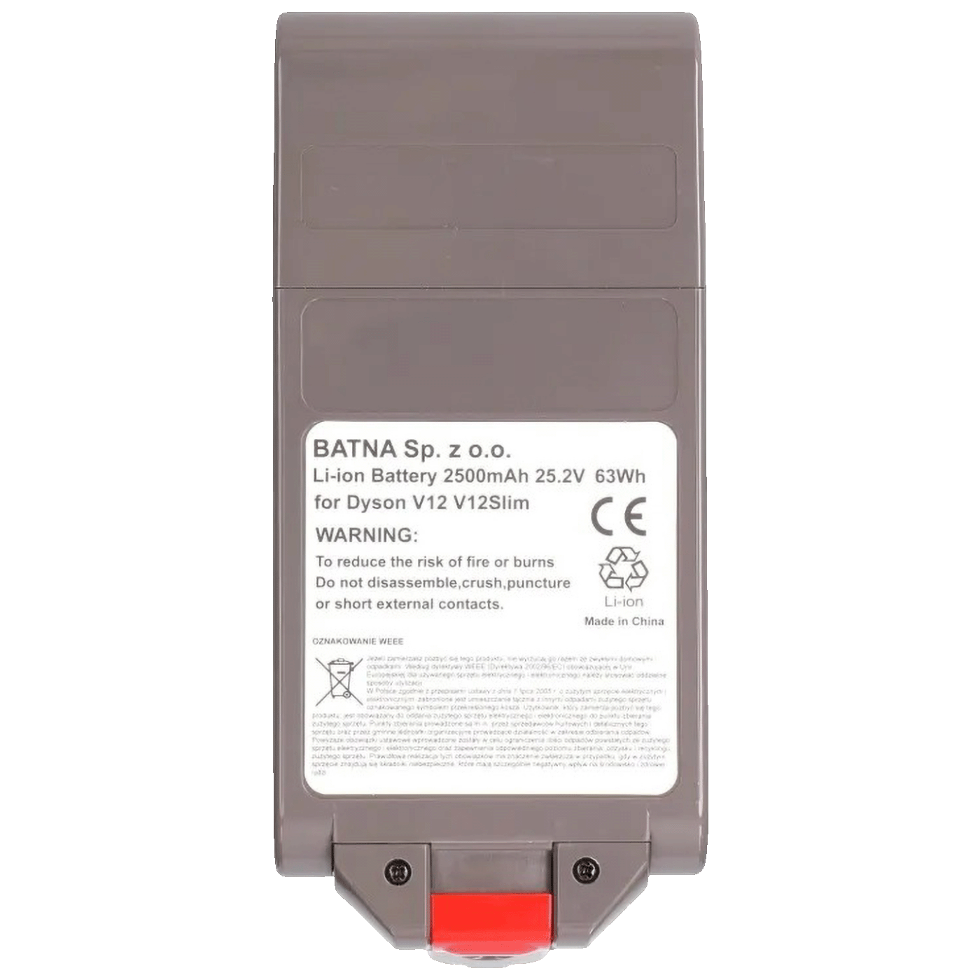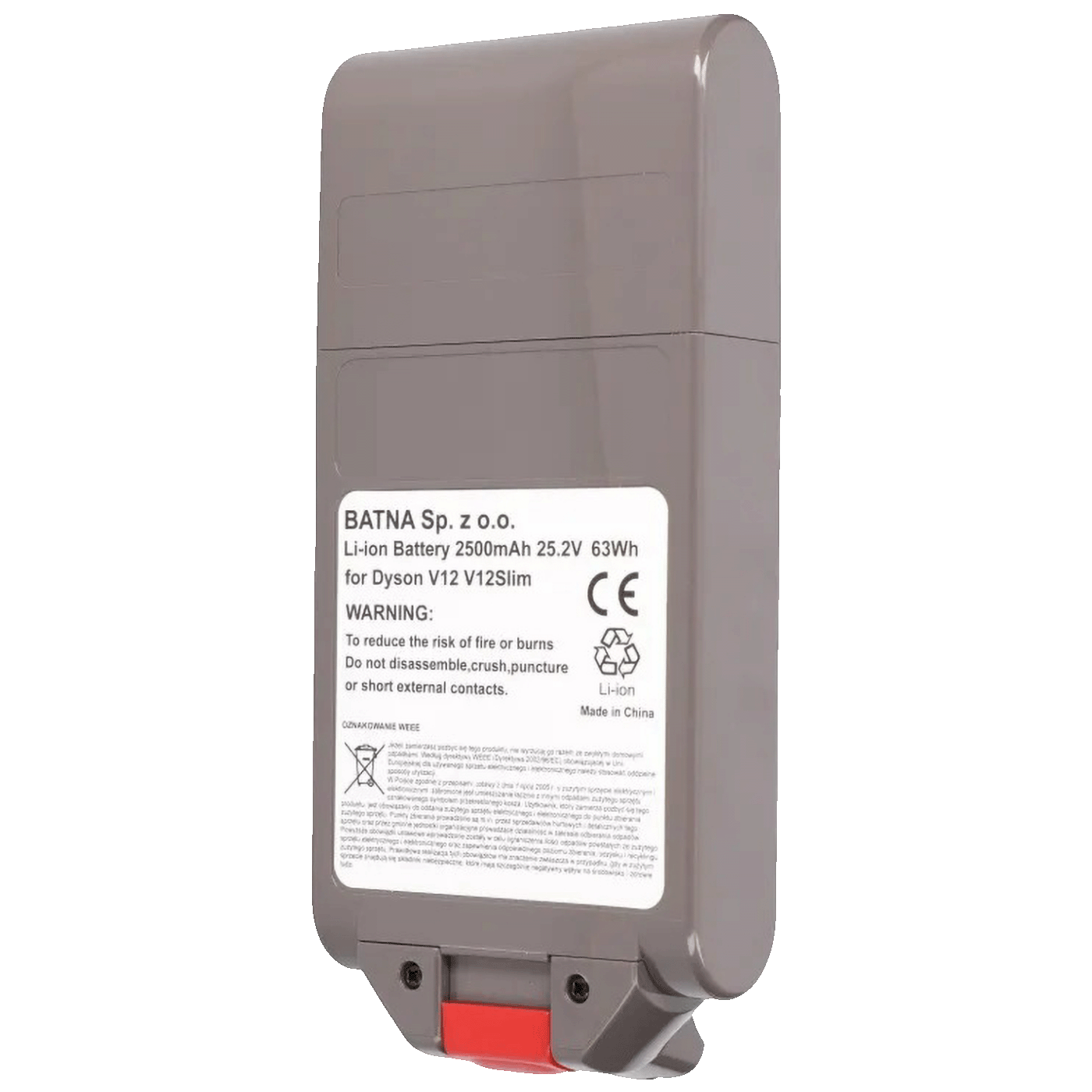 Zamjenska baterija za Dyson V12 usisavače kapaciteta 2500 mAh i napona 25.2V omogućava pouzdan i dugotrajan rad uređaja. Zahvaljujući Li-ion tehnologiji, baterija pruža stabilne performanse i produženo vrijeme čišćenja bez potrebe za čestim punjenjem. Dizajnirana je kao kvalitetna alternativa originalnoj bateriji, uz potpuno kompatibilan rad i jednostavnu instalaciju.
