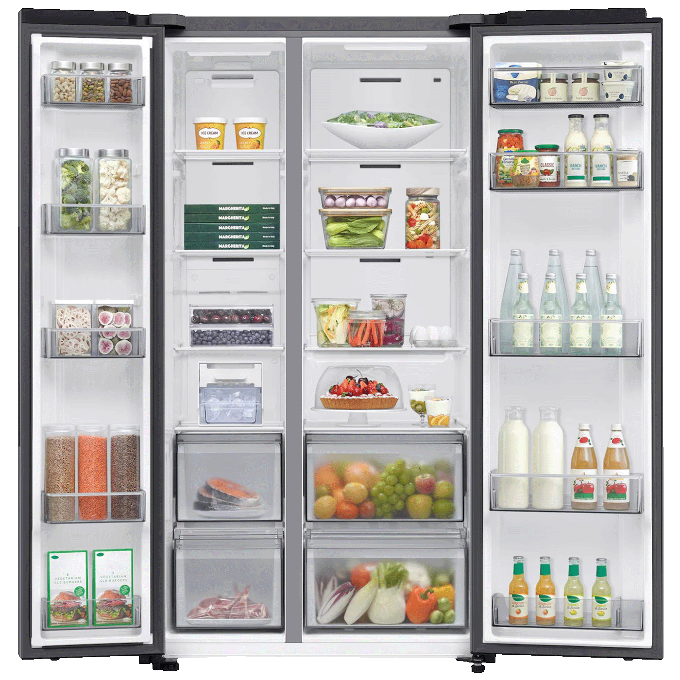 Samsung RS70F65QETEO je prostrani side-by-side frižider ukupnog kapaciteta 659 litara, idealan za veća domaćinstva i korisnike kojima je potreban veliki prostor za skladištenje hrane. Zahvaljujući SpaceMax™ tehnologiji, zidovi su tanji, što omogućava veći unutrašnji prostor bez povećanja vanjskih dimenzija.