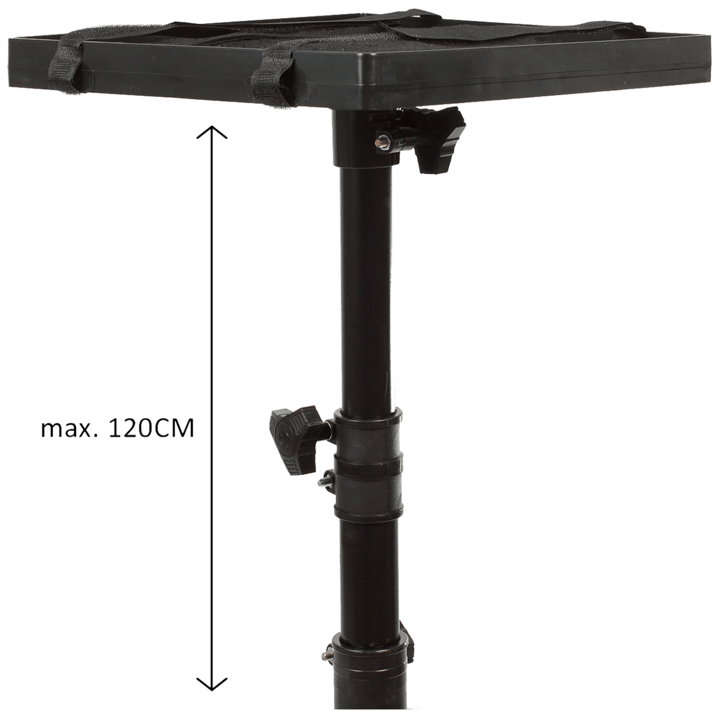 Podešavanje visine omogućava prilagođavanje postolja individualnim potrebama korisnika. Uokvireni nosač sprečava klizanje projektora, koji se dodatno može pričvrstiti čičak trakama.