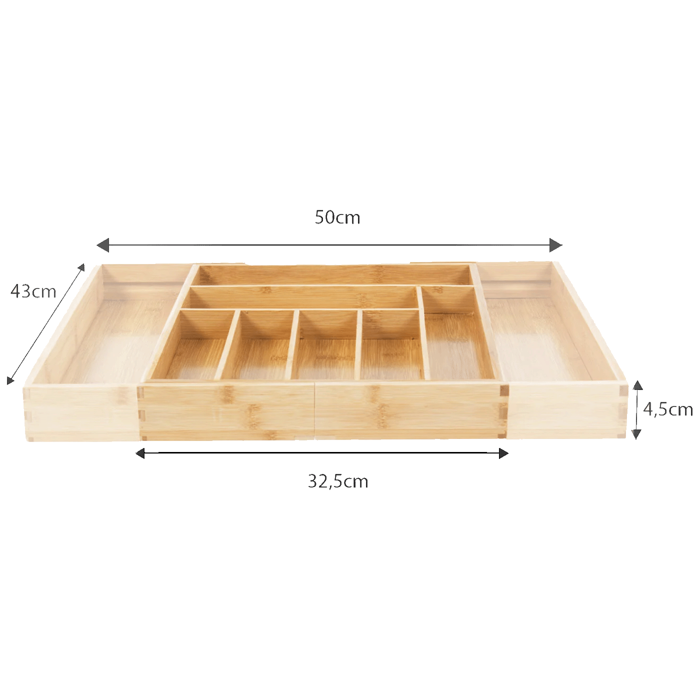 Proširivi dizajn omogućuje vam da prilagodite njegovu veličinu svojoj ladici, osiguravajući savršeno pristajanje.