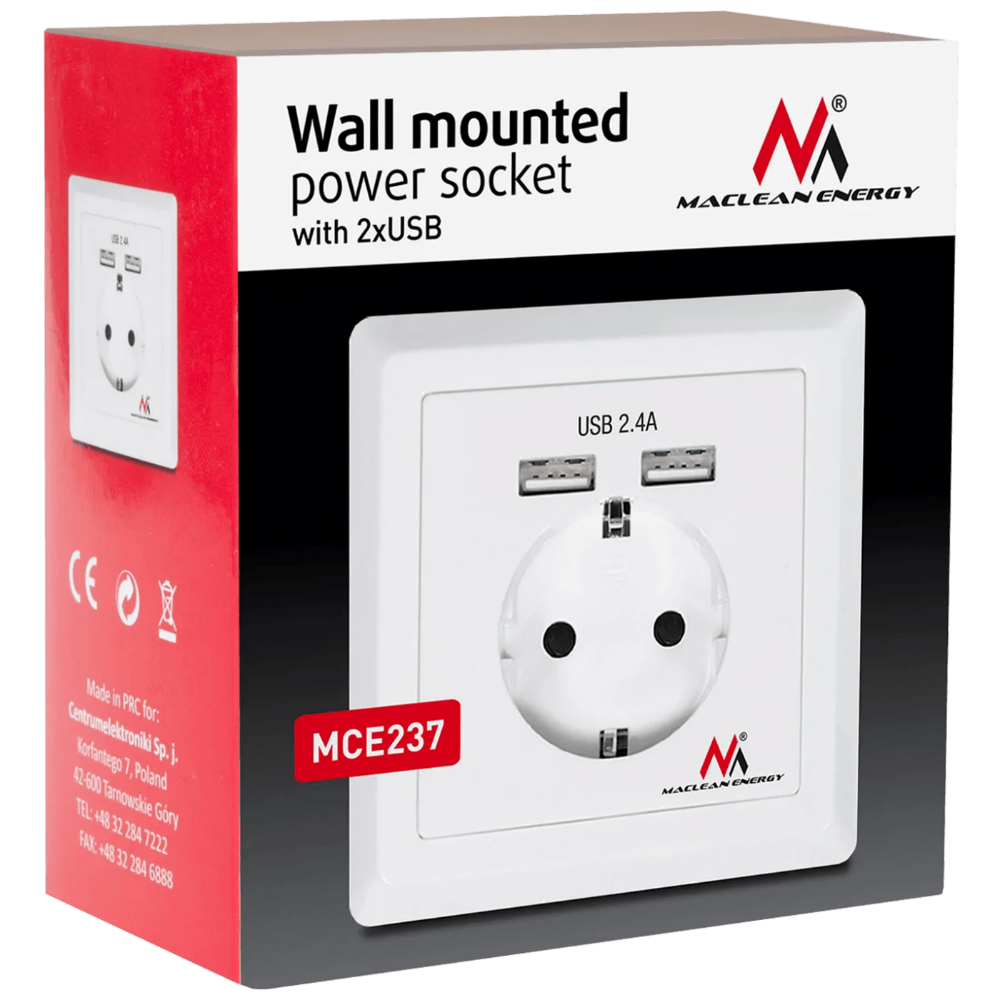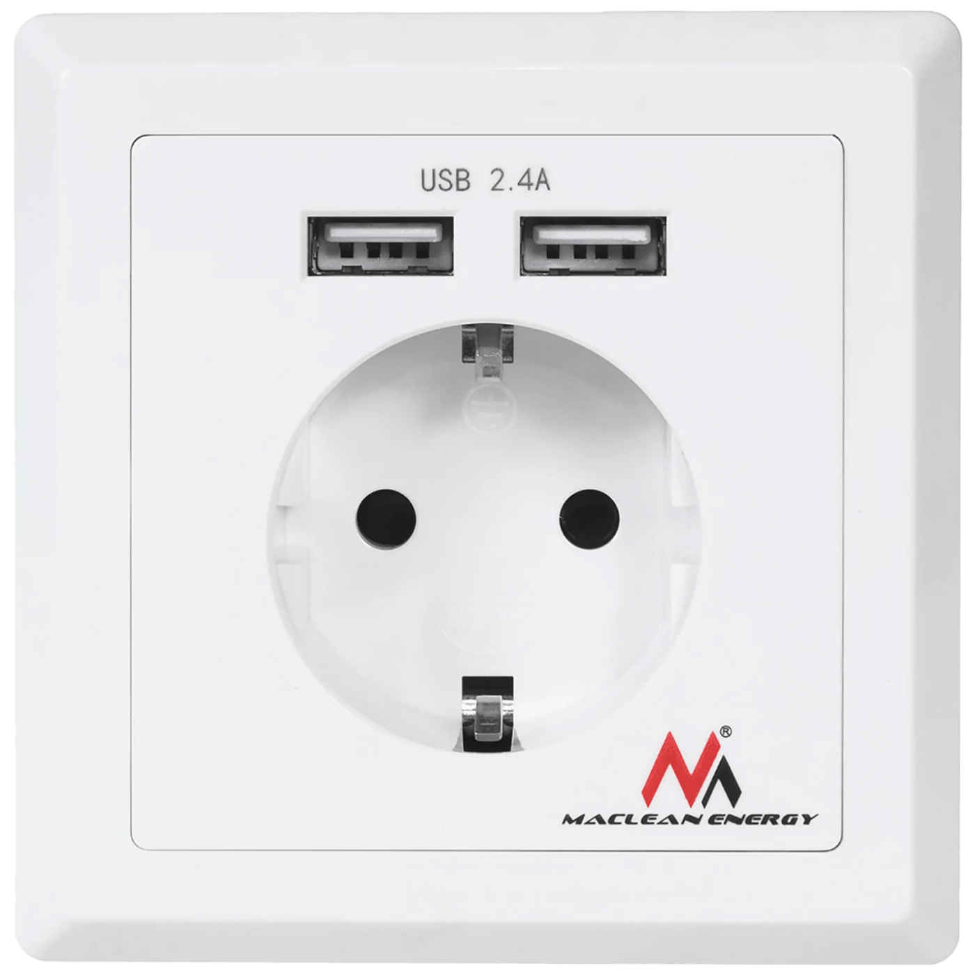 Maclean MCE237 ugradna Schuko utičnica ima 2 USB utičnice za punjenje. 2 x USB ulaza s max. 2.4A omogućuje punjenje do dva uređaja u isto vrijeme.