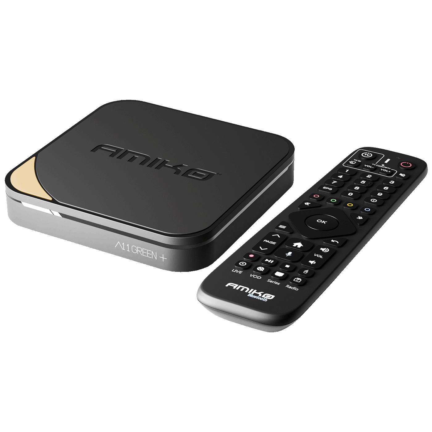 Amiko A11 Green+ je IPTV prijemnik s Android TV-om 11 koji nudi intuitivno i fleksibilno korisničko iskustvo.