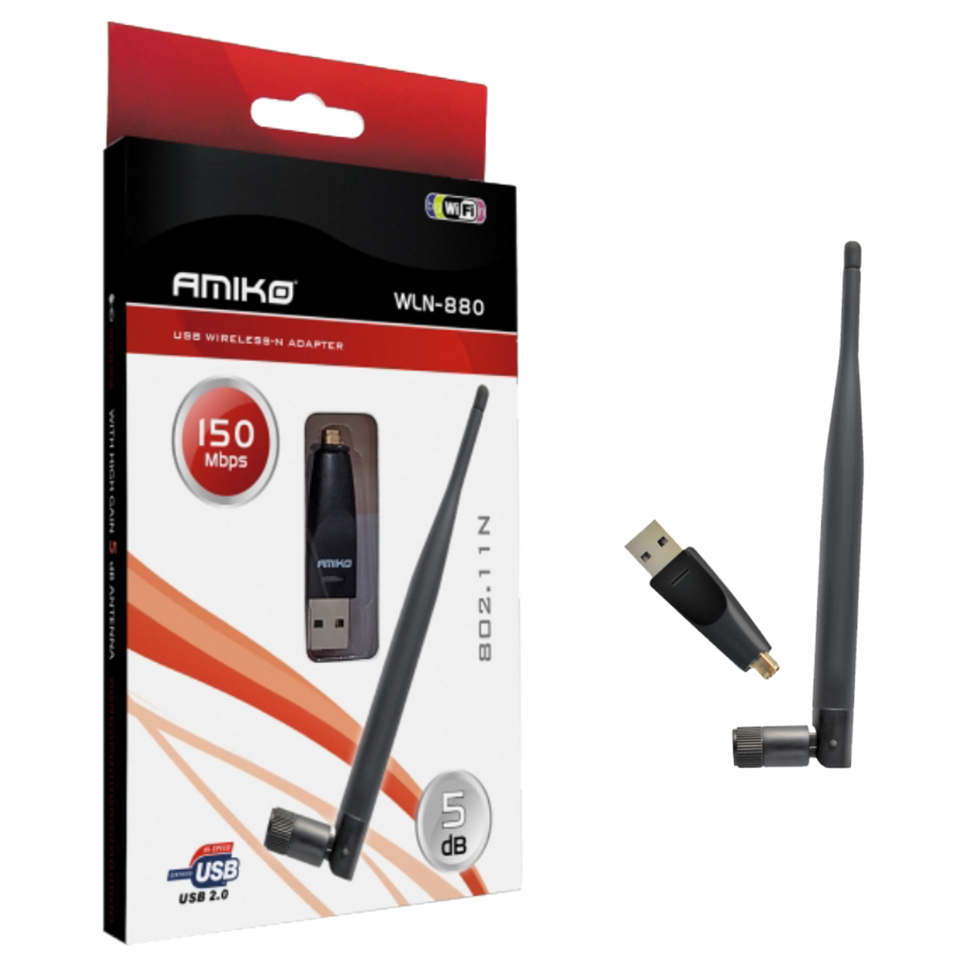Amiko Wi-Fi mrežna kartica, USB, 2.4 GHz, 5 dB, 150 Mbps - WLN-880
