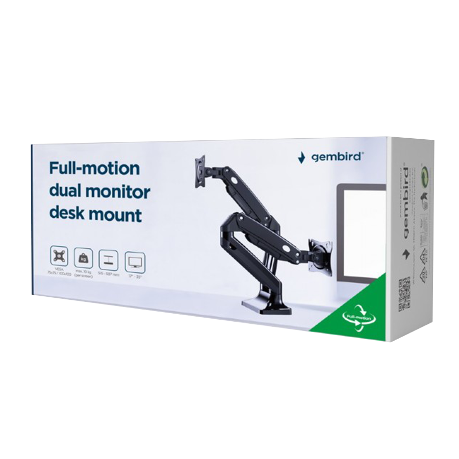 NOSAČ ZA DVA MONITORA GEMBIRD MA-DA2-03, montaža na stol, Full-motion, 17”-35”, up to 10 kg