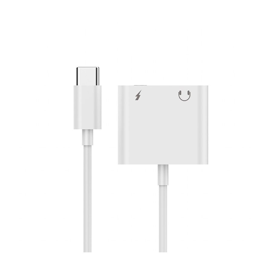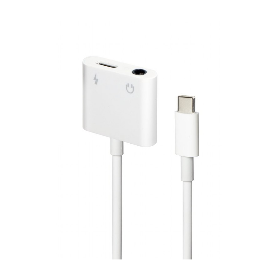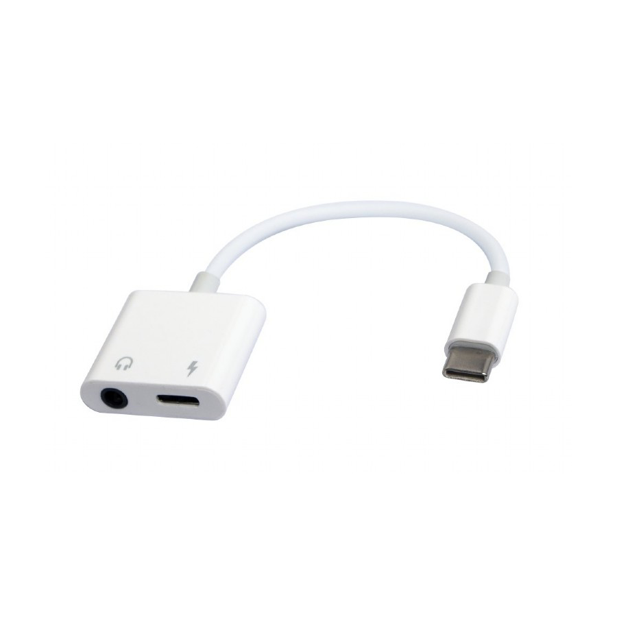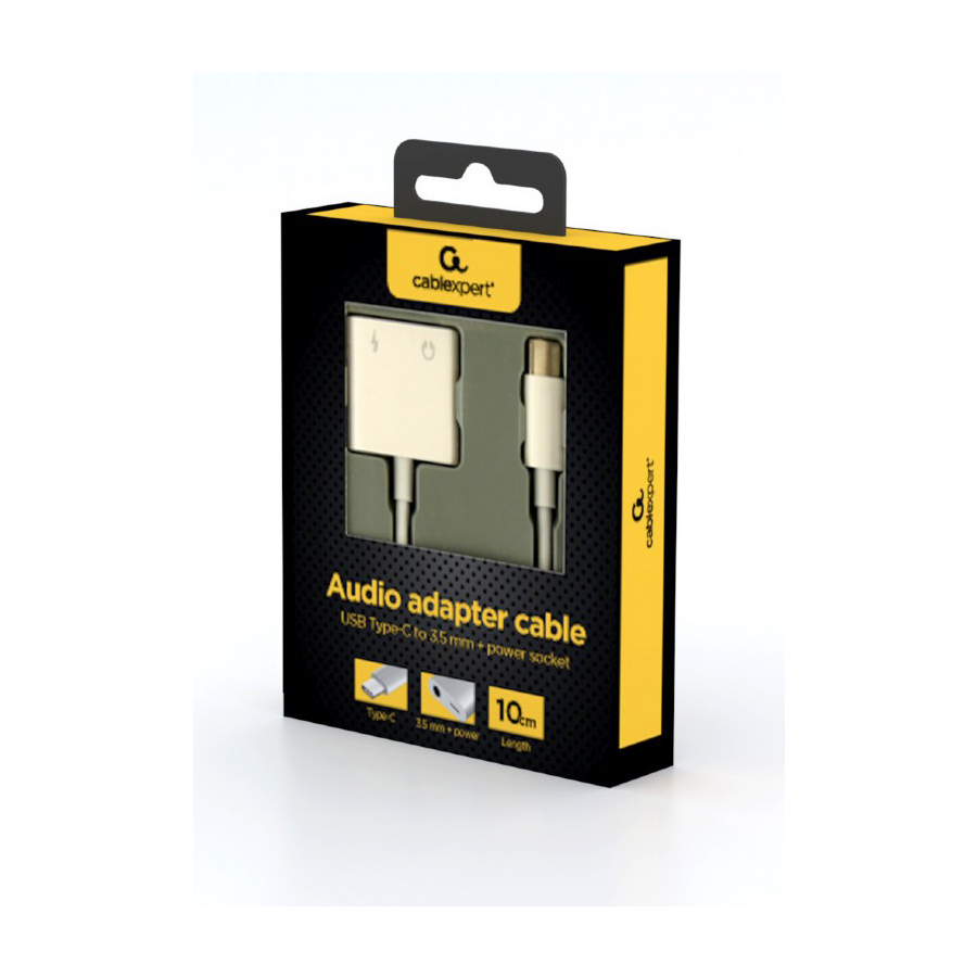 Audio adapter GEMBIRD A-CM-3.5FP-01, USB type-C plug to stereo 3.5 mm + Type-C power, white