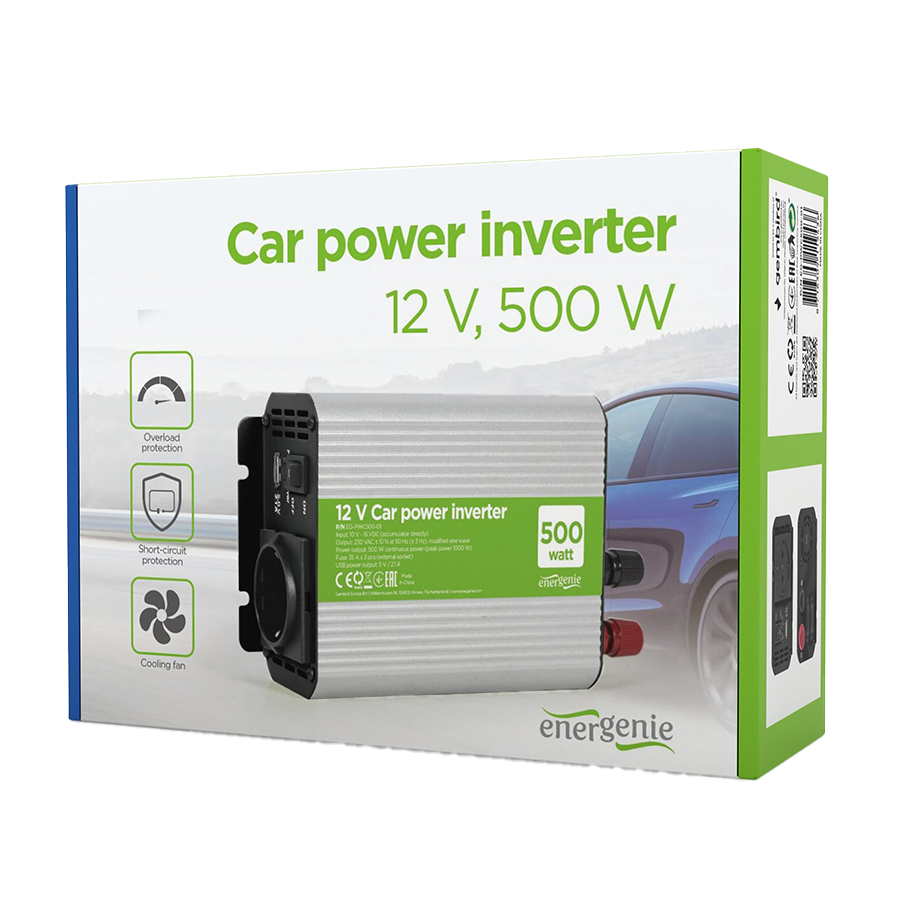 DC-AC inverter za auto GEMBIRD, in12Vout220V 500W EG-PWC500-01