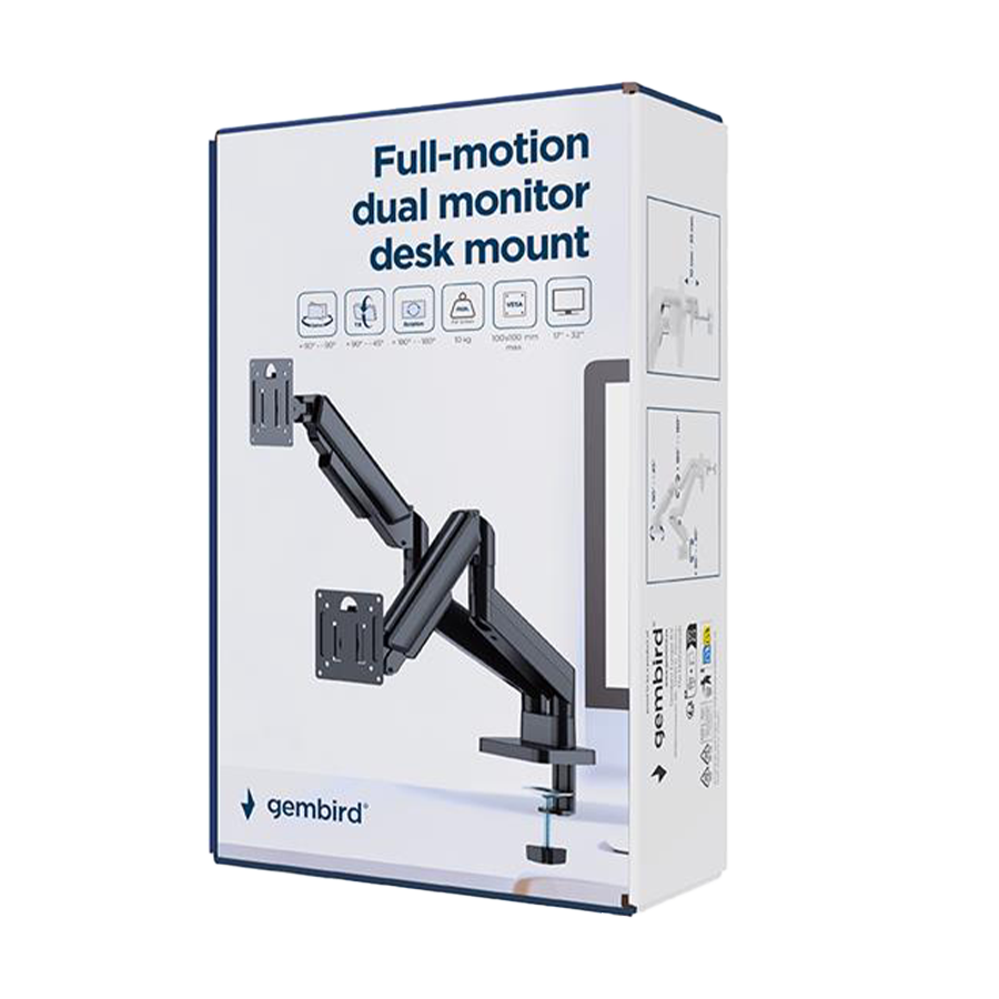 NOSAČ ZA DVA MONITORA GEMBIRD MA-DA2-06, montaža na sto, 17" up to 32", up to 10 kg, black
