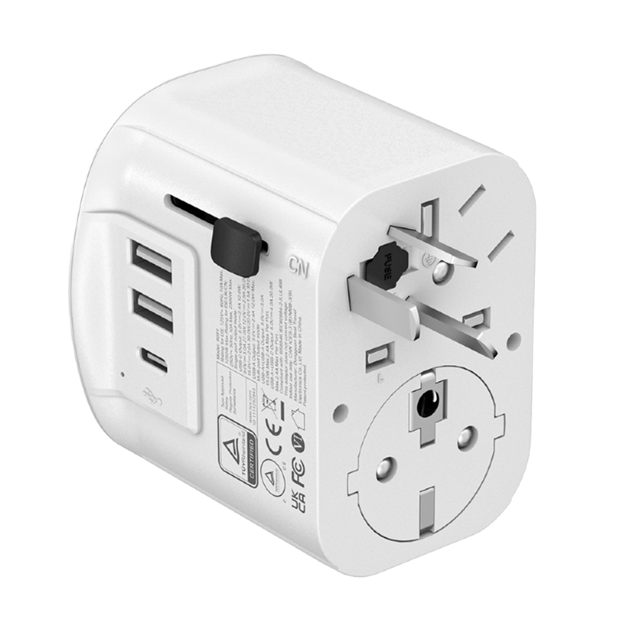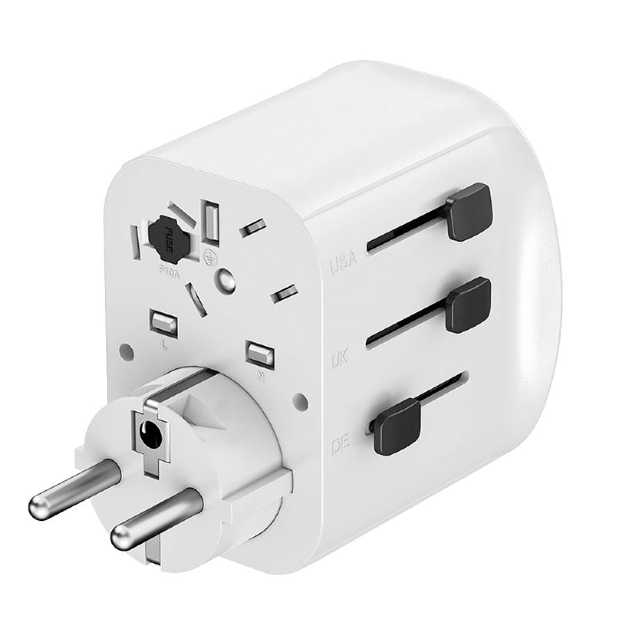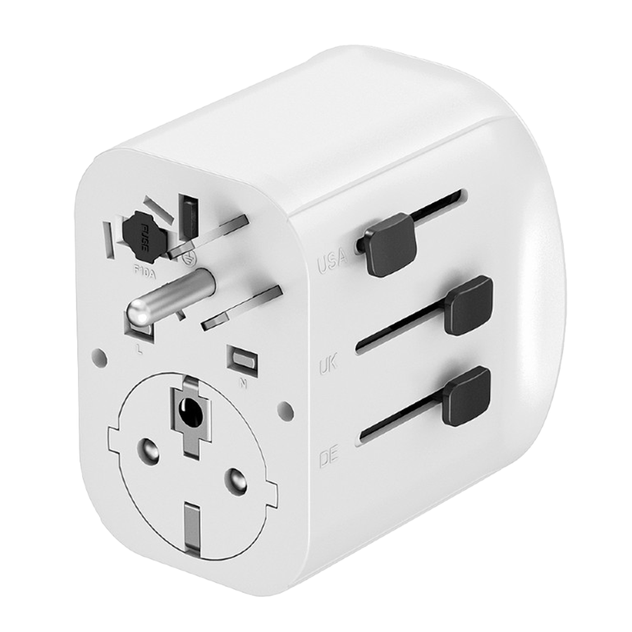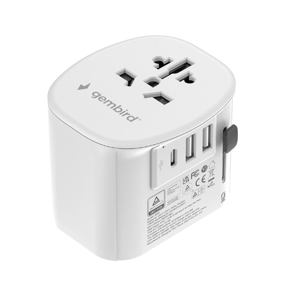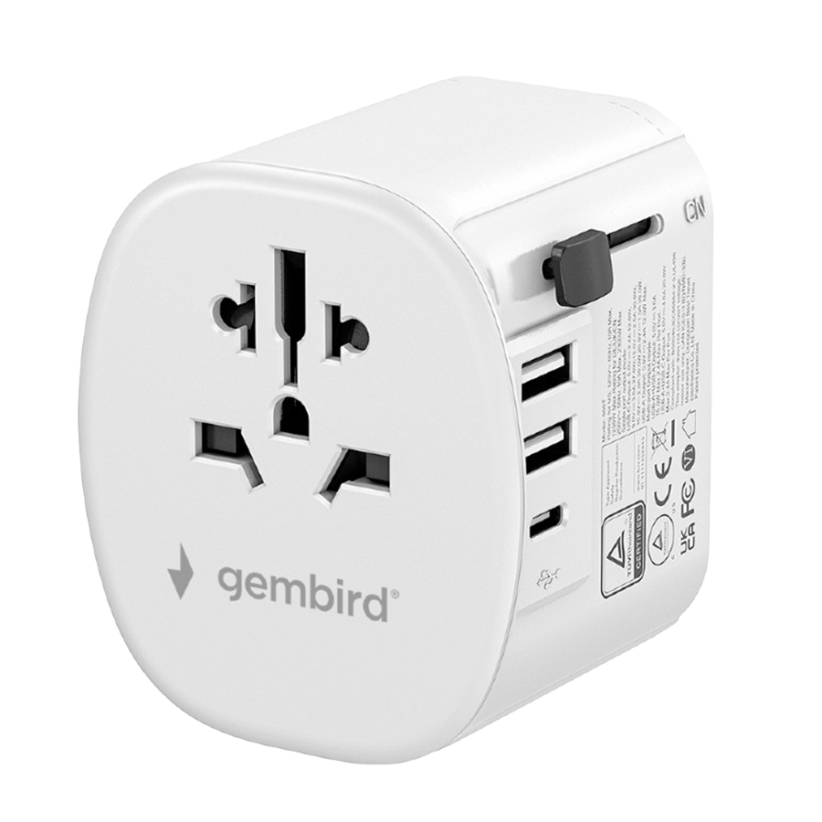 Univerzalni strujni adapter za sve zemlje + USB + Type-C punjač GEMBIRD, 20 W, white, TPA-EU2A1C15-01-W