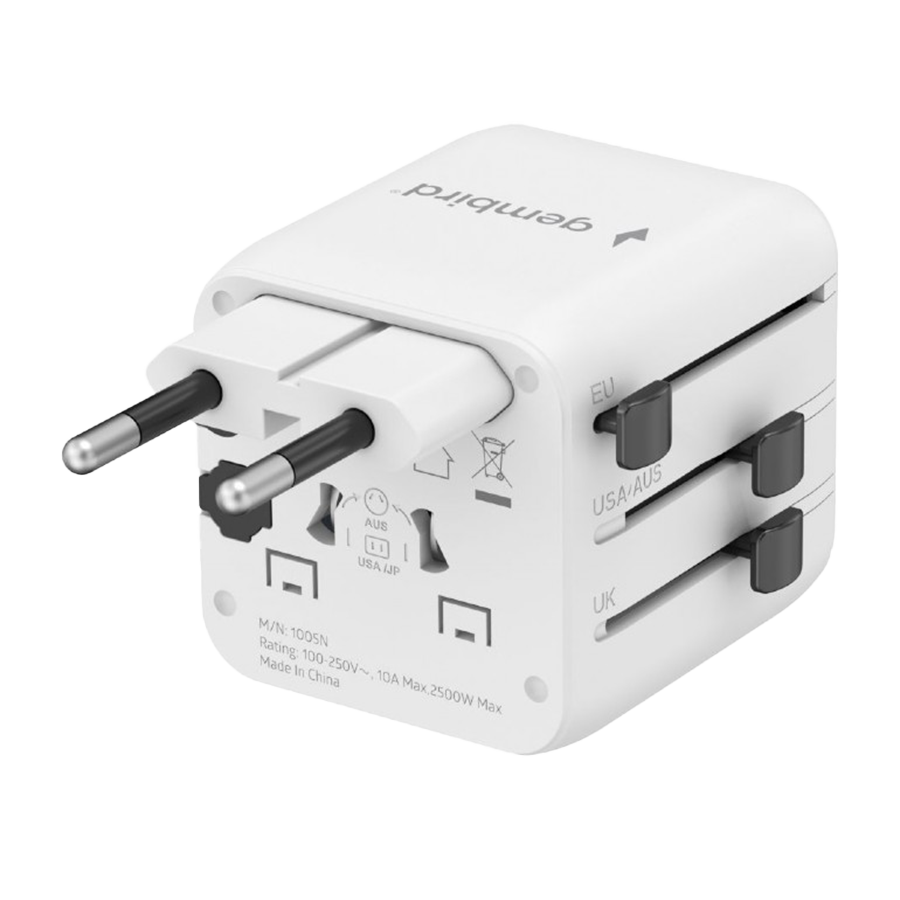 Univerzalni strujni adapter za sve zemlje GEMBIRD, 20 W, white, TPA-INT-01-W