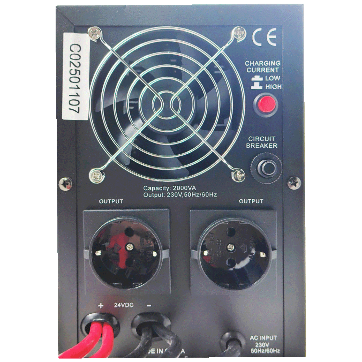 Ovaj model vrši konverziju napona sa 24 V DC na stabilnih 220 V AC uz gotovo idealni sinusni oblik izlaznog napona, što ga čini kompatibilnim sa osjetljivim elektronskim uređajima poput video nadzora, računara i mrežne opreme. Grafički LCD displej u boji jasno prikazuje status rada, nivo napunjenosti baterije i opterećenje, dok snažan punjač sa izborom struje od 10 A ili 15 A omogućava efikasno punjenje vanjskih baterija.