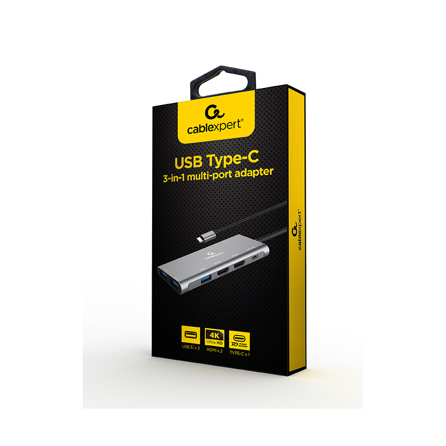 Docking station GEMBIRD USB adapter Type-C 3-in-1 multi-port adapter Hub + HDMI + PD, A-CM-COMBO3-03