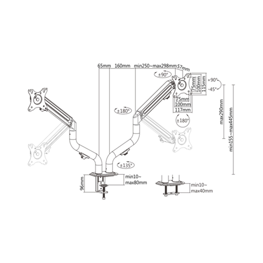 NOSAČ ZA DVA MONITORA GEMBIRD MA-DA2-02, montaža na stol, (tilting), 17”-32”, up to 8 kg