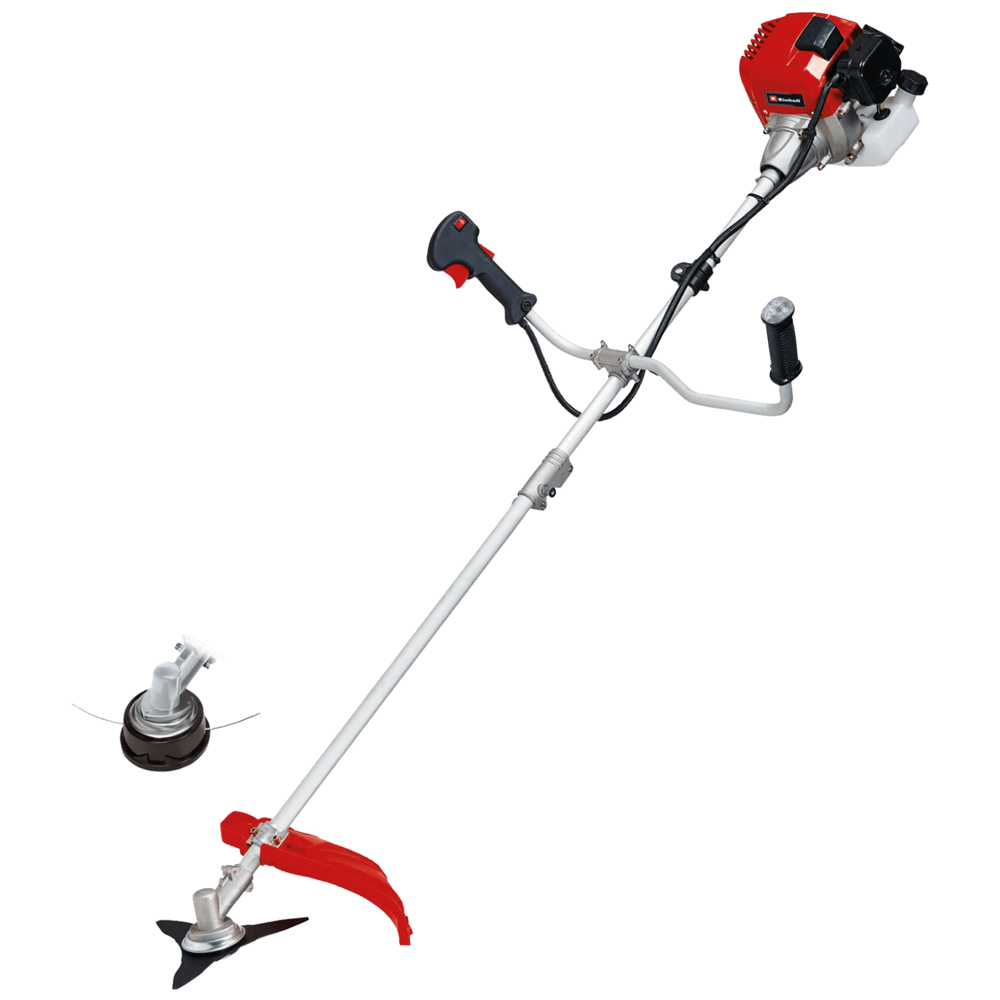 GC-BC 52 I AS benzinski trimer je iznimno moćan uređaj koji se bez napora može nositi sa tvrdokornim rastinjem u teško dostupnim područjima vrta. Obilje snage osigurava visokokvalitetni dvotaktni motor, koji zahvaljujući dvostrukoj radilici sa ležajem i antivibracijskoj funkciji radi iznimno tiho i uz niske vibracije. Zahvaljujući digitalnom paljenju, zajamčen je brz i dinamičan odgovor gasa i zajamčen je stabilan rad motora. Sve kontrole na trimeru mogu se lako postići na univerzalno podesivoj aluminijskoj dršci s dvije ruke sa dizajnom ručke bicikla, tako da se trimer može voditi vrlo udobno i precizno. Za profesionalnu košnju, GC-BC 52 I AS može biti opremljen s 3-zubnim nožem ili nosačem silka s dvostrukim navojem s automatskim izvlačenjem silka koji su uključeni u isporuku. GC-BC 52 I AS ima čvrstu aluminijsku cijev koja može izdržati velika opterećenja. Njegov sustav brzog pokretanja s lako dostupnom pumpicom i automatskim čokom, omogućuje brzo i jednostavno pokretanje. Sigurnost na radu osigurava se centrifugalnom spojkom, koja pri praznom hodu odvaja rezni alat. Remen za nošenje osigurava udoban rad. Za jednostavno transportiranje i uštedu prostora, trimer se može rastaviti na dva dijela zahvaljujući podijeljenoj šipki.