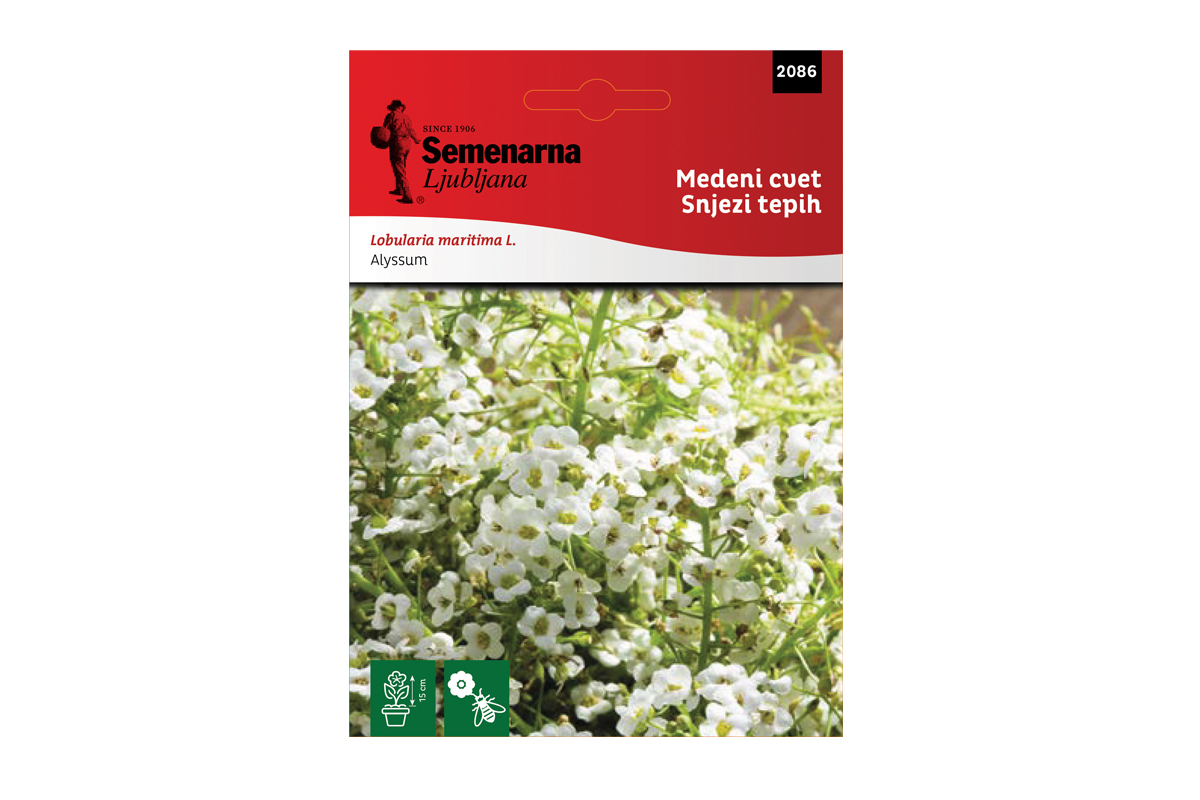 Medeni cvet ili snežni tepih je nisko cveće koje veoma lepo izgleda kad se posadi u kamenjar, uz rub staze, kao pokrivač zemljišta ispod visokih biljaka, ili u žardinjere. Miriše na med. Niska jednogodišnja biljka, visine 10-15 cm. Seme klija 8-14 dana, rasađuje se u saksije ili bašte kada prođe opasnost od mrazeva. Vreme od setve semena do cvetanja je 3 meseca. Cveta od maja do prvih mrazeva. Vrsta semena: Seme cveća
