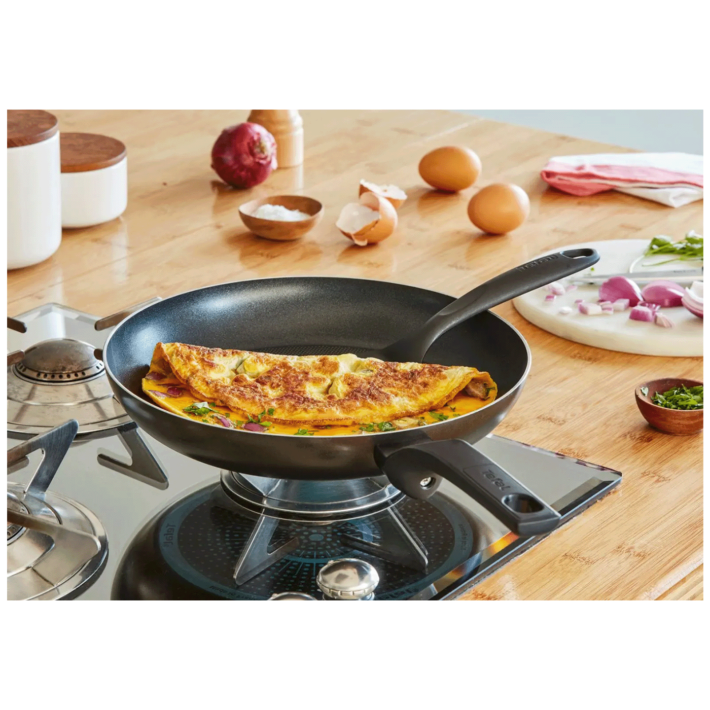 Visokokvalitetni premaz od titana izrađen je da traje, dok difuzijska baza proizvodi optimalnu raspodjelu topline za ravnomjerno kuhanu hranu, a ručka nudi poboljšanu ergonomiju za maksimalnu udobnost.