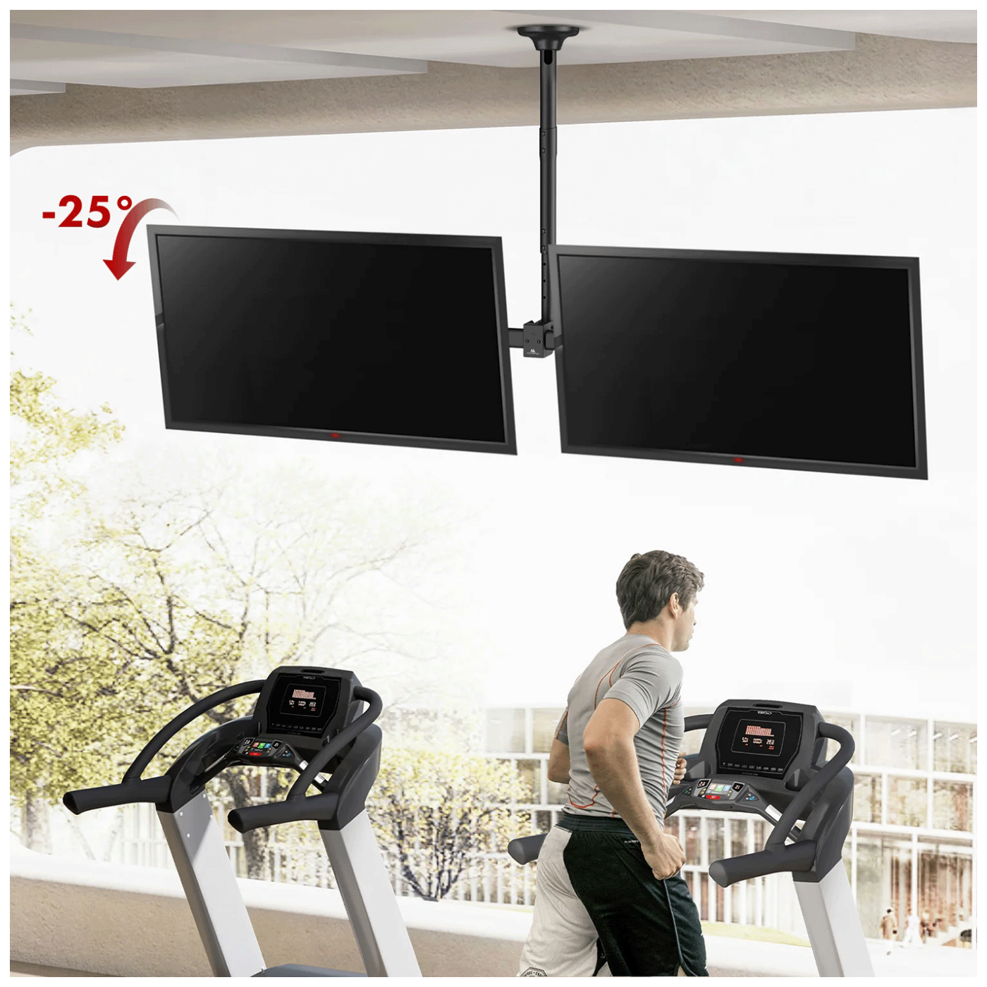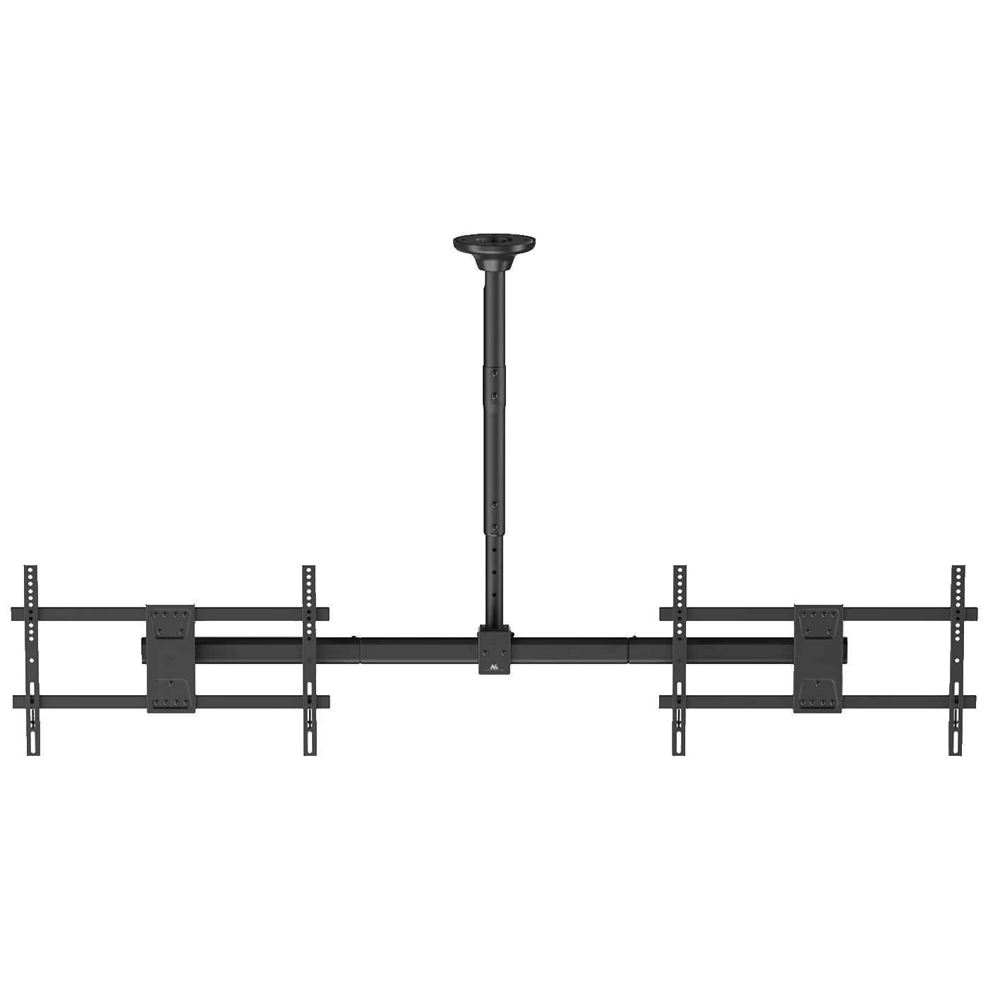 Maclean MC-111-B je robustan stropni nosač koji omogućava istovremeno montiranje dva televizora — idealan za salone, trgovine, recepcije ili bilo koje prostore gdje je poželjan prikaz s više ekrana.