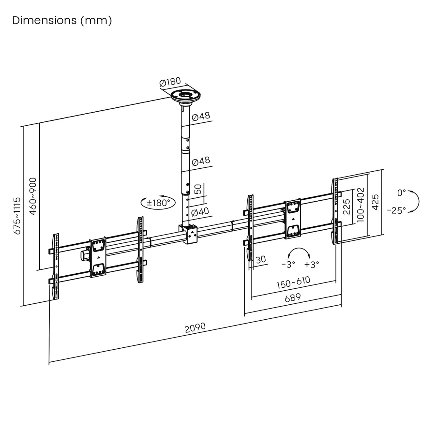 Maclean Nosač za 2 TV-a, stropni, 34"-60", 2 x 40 kg - MC-111 B