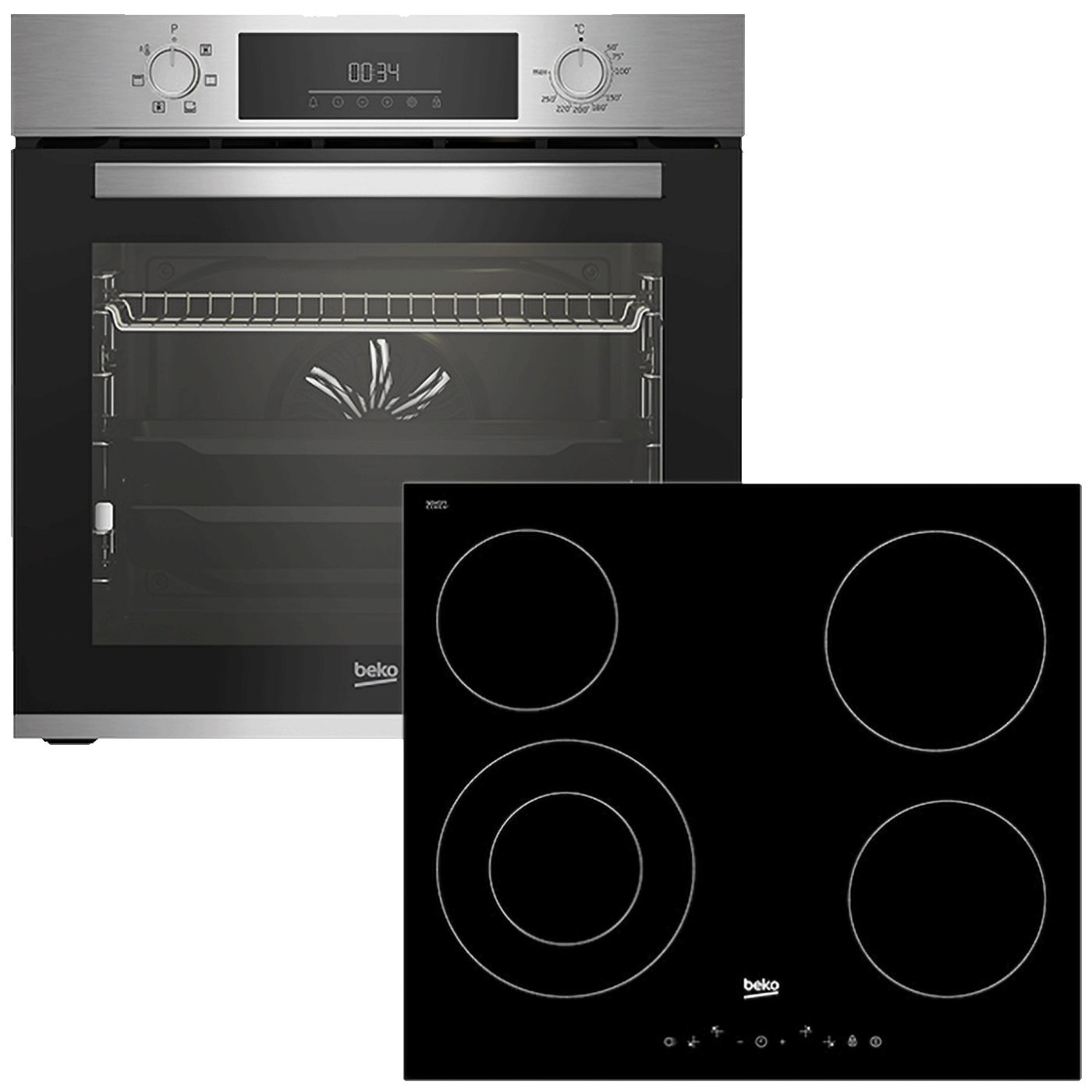 Beko ugradbeni set N11 BBSE 123001 XD je komplet koji sadrži ugradbenu staklokeramičku ploču za kuhanje i ugradbenu pećnicu, dizajniran za modernu kuhinju gdje želite funkcionalnu i kompaktnu kombinaciju. Ploča ima četiri električne zone različitih snaga i indikator preostale topline, dok rerna nudi šest funkcija uključujući ventilatorsko pečenje i električni gril. Upravljanje je jednostavno zahvaljujući LED displeju i Touchcontrol Prologue panelu, a parno čišćenje (SteamShine) olakšava održavanje čistoće pećnice. Boja inox i metalni panel daju modern izgled koji se dobro uklapa u većinu kuhinjskih stilova.