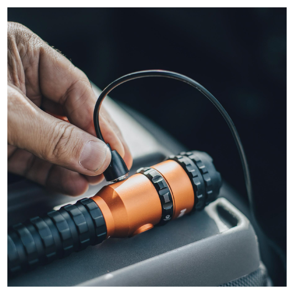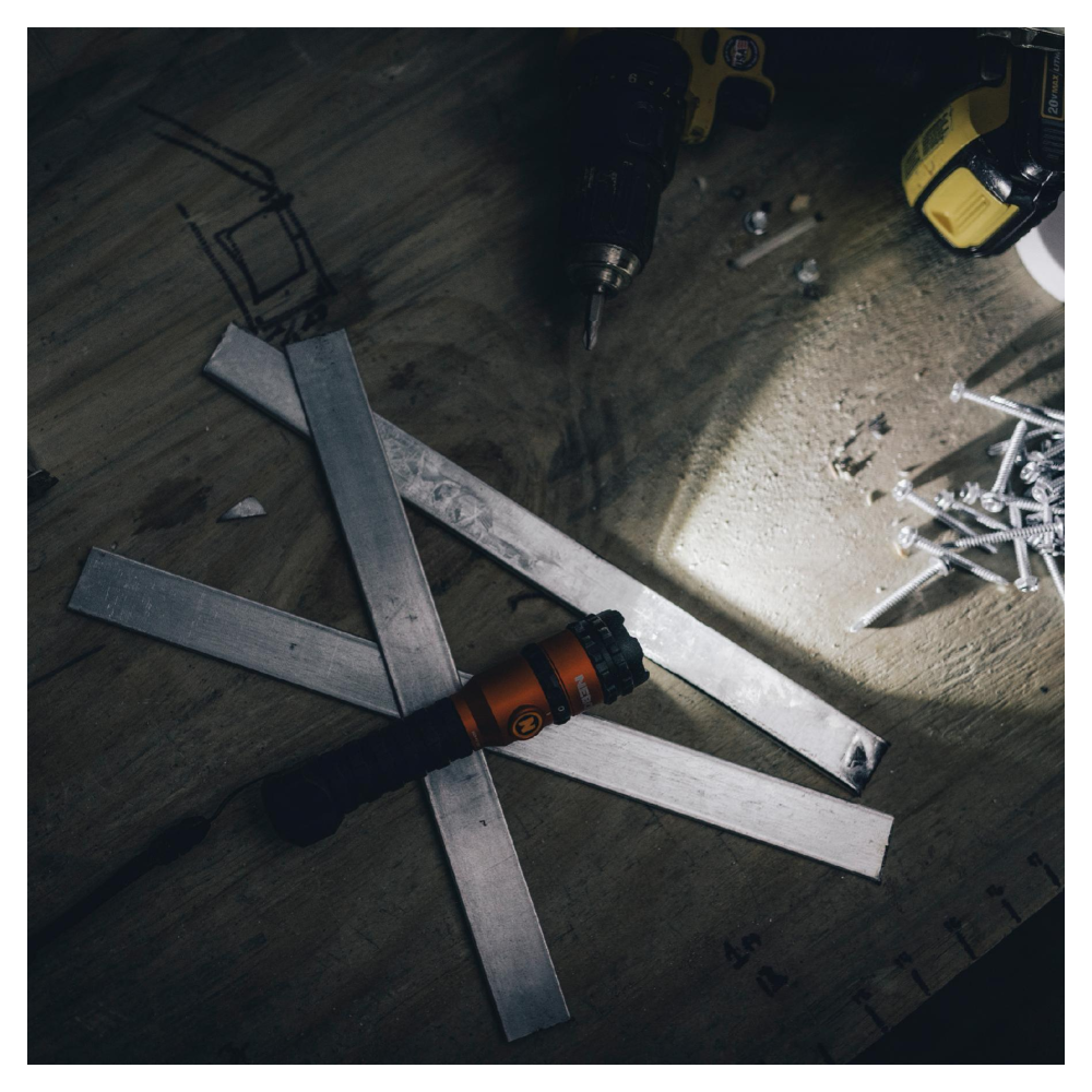 Ova svjetiljka ima i podesiv 2x zum, što omogućava fokusiranje svjetla na određeno područje, kao i vodootpornost (IP67) i otpornost na udarce (2 metra). Ergonomski gumirani rukohvat čini svjetiljku udobnom za držanje, dok magnetska baza omogućava jednostavno postavljanje svjetiljke na željeno mjesto.
