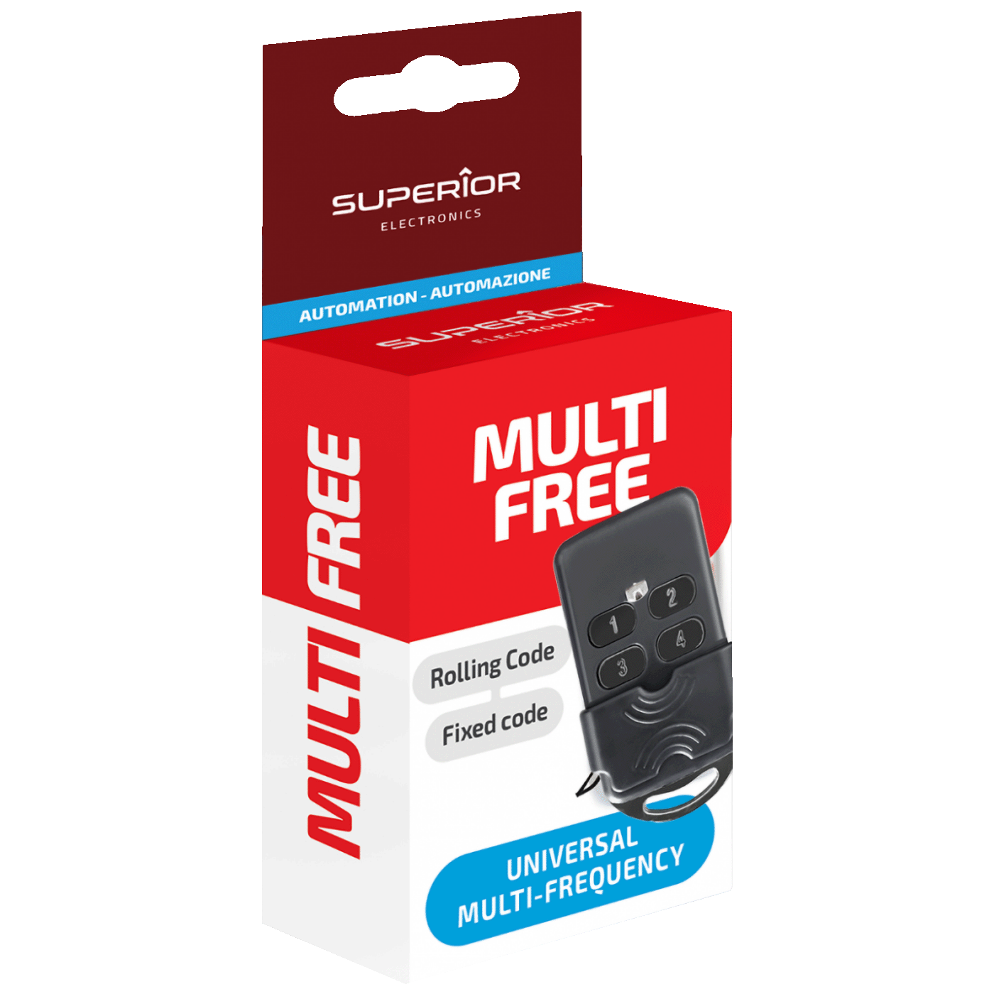 Superior Electronics Multi-Free je univerzalni RF daljinski upravljač namijenjen za upravljanje garažnim vratima, kapijama, rampama i drugim automatiziranim sistemima. Ovaj model predstavlja multifrekvencijsko rješenje koje može zamijeniti originalne daljinske upravljače različitih proizvođača, pružajući maksimalnu fleksibilnost i praktičnost u svakodnevnoj upotrebi.