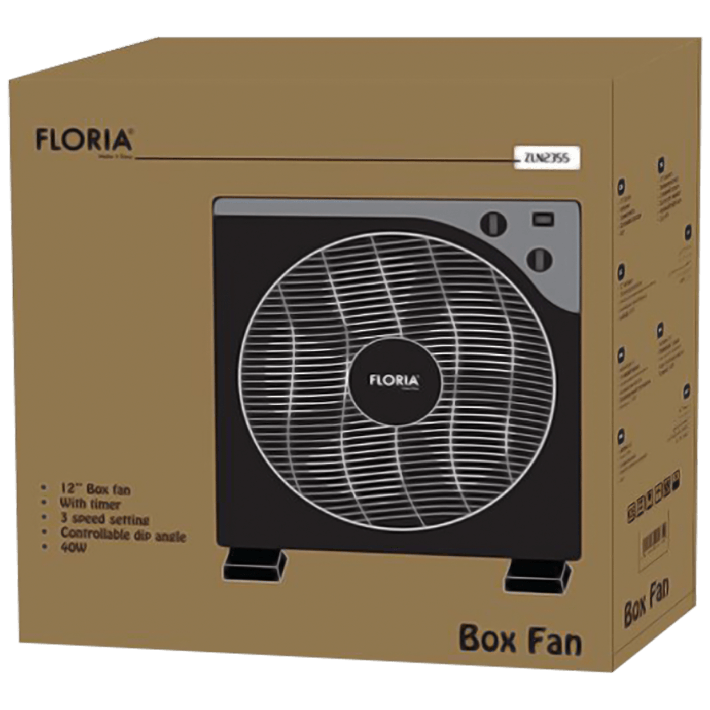 Ventilator ZLN2355 "box", podni, 30 cm promjer sa 5 plastičnih lopatica, 3 nivoa brzine, podesivost kuta, oscilacija, 360°, timer do 60 minuta, masivna zaštitna mrežica, snaga 40 W. Idealno za svaki kutak Vašeg doma
