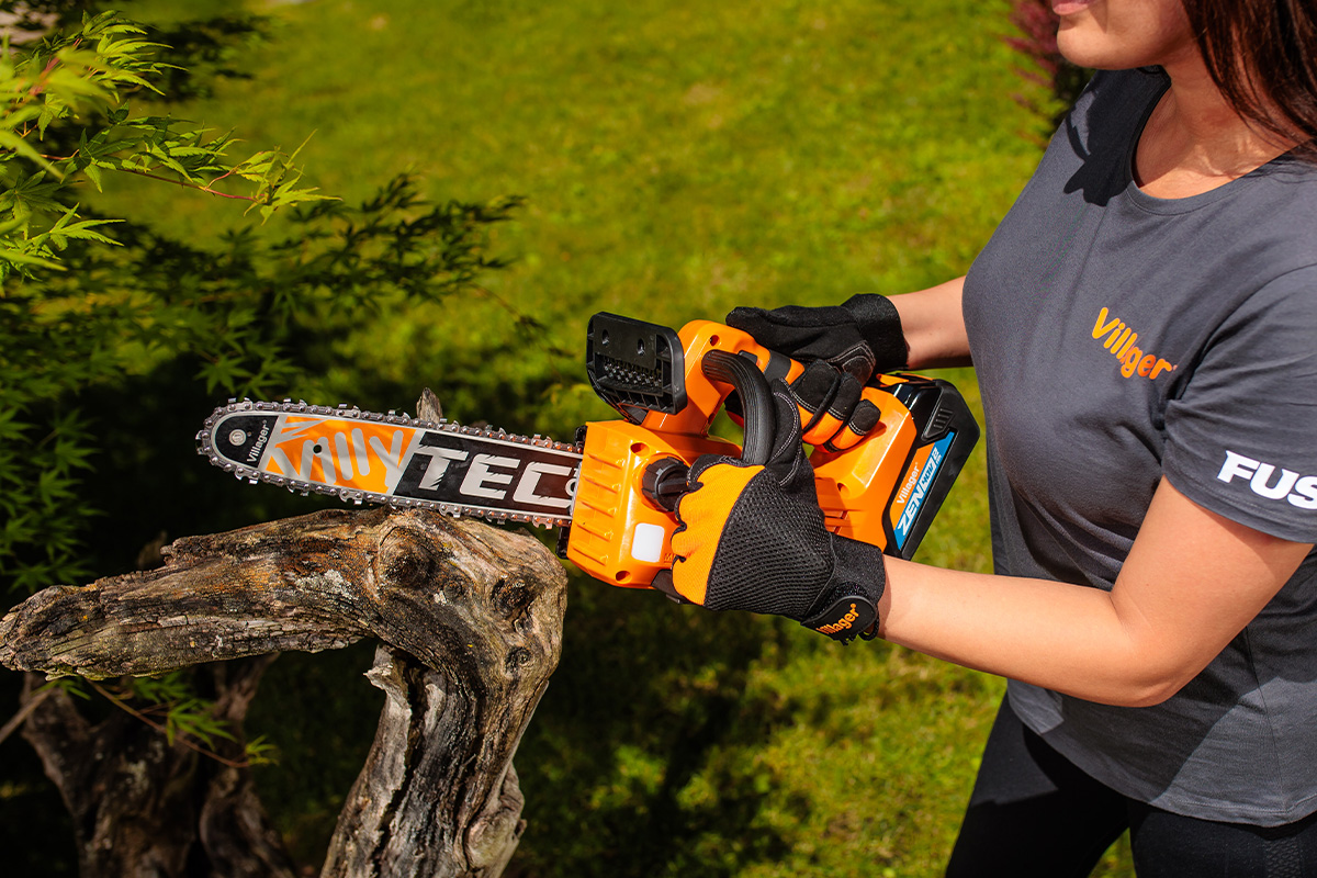 Kompaktna snaga: ZEN akumulatorska lančana testera Villager CS 3040 kombinuje prenosivost sa visokim performansama. Karakteriše je motor bez četkica sa ocenom od 36V (maksimalno 40V) i brzinom motora od 7500/min. Opremljena sa 12" vodilicom i lancem, i korakom lanca od 3/8", dostavlja maksimalnu brzinu lanca od 14.5m/s. Testera uključuje rezervoar za ulje od 150ml i nudi podesivu brzinu podmazivanja od 4-10ml/min, optimizujući vek lanca. Uprkos svojoj snažnoj izlaznoj snazi, održava nizak nivo buke od 106dB i izuzetno je laka sa samo 1.9kg, poboljšavajući udobnost i efikasnost korisnika.