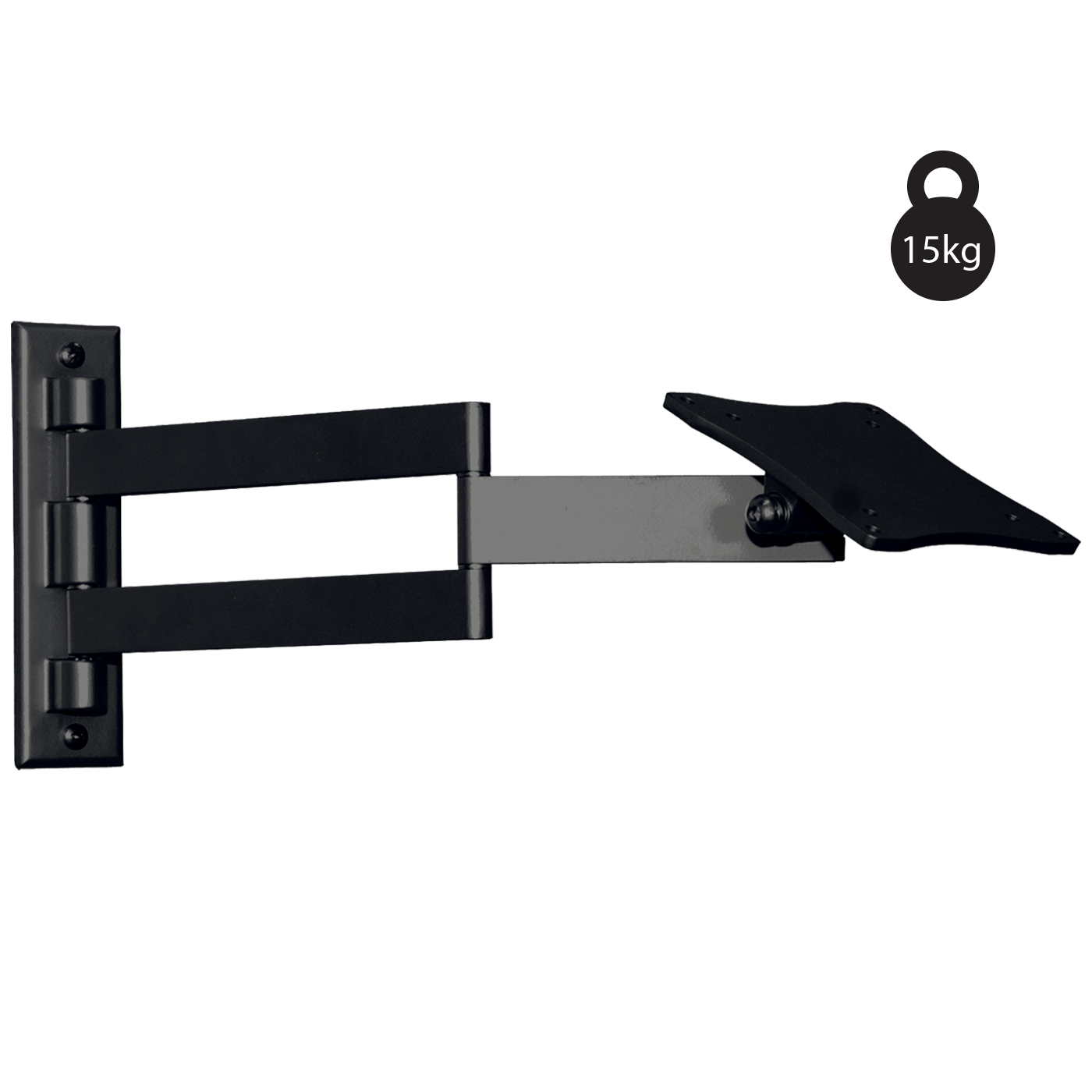 Zidni nosač za TV prijemnike , maximalno opterećenja 15 kg, VESA 75 x 75, 100 x 100 mm , nagib +/-80°, jednostavna montaža, fiksno pozicioniranje. Pakiranje: set vijaka za montažu i upute za uporabu. Boja crna