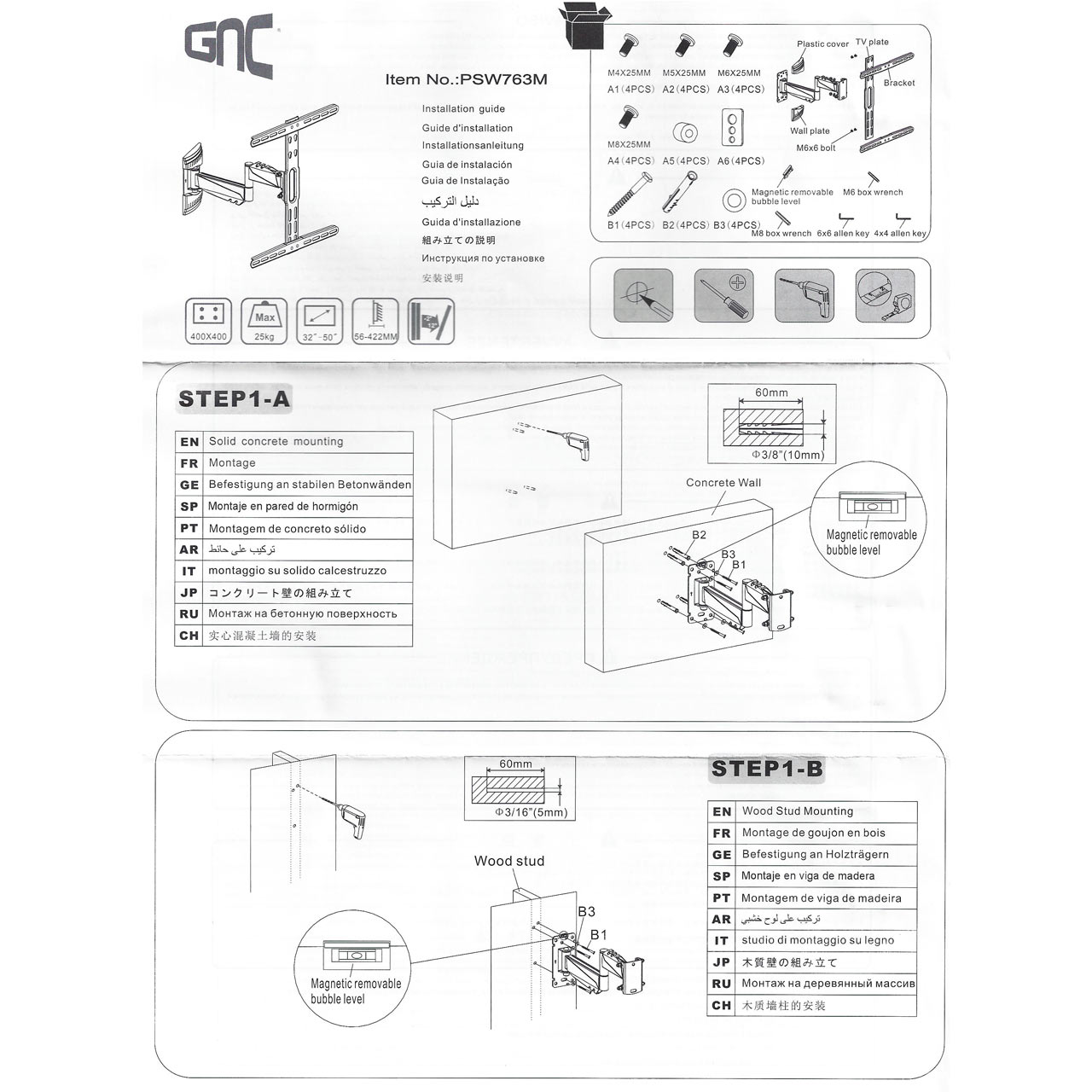 Zidni nosač GNC PSW763M, 32"-55", 25kg, VESA 400x400