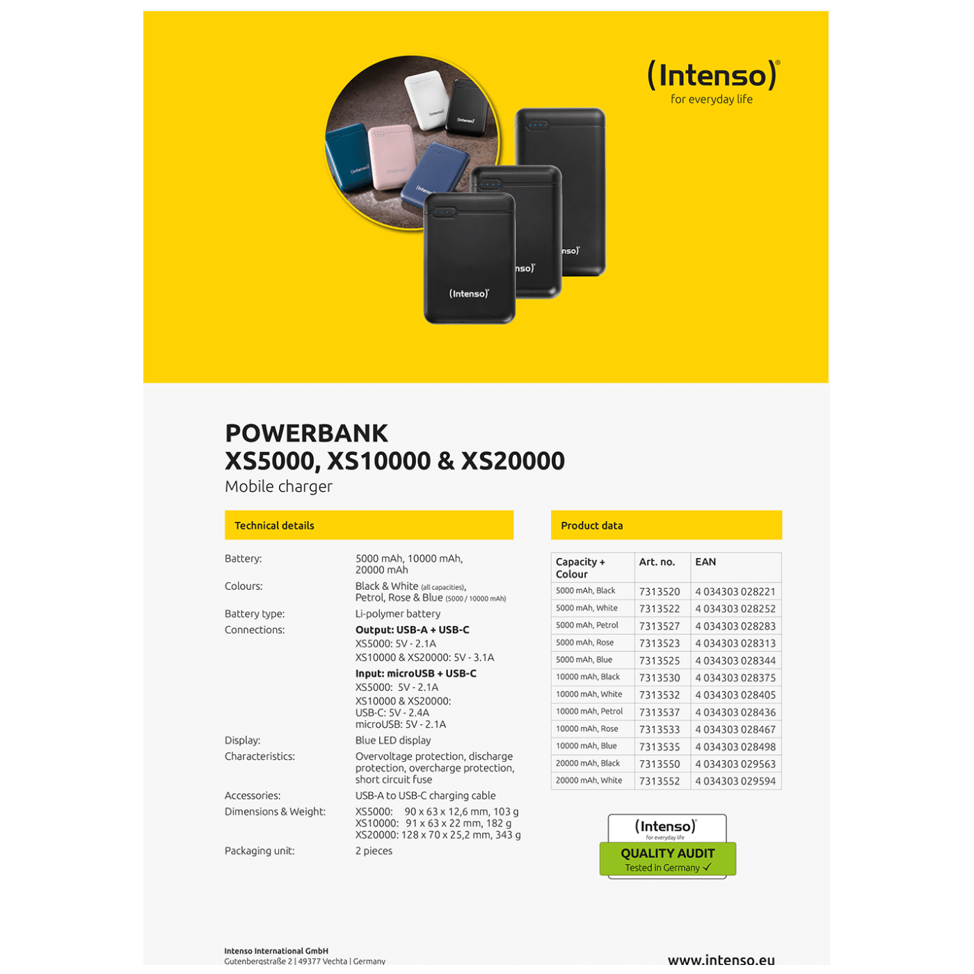 (Intenso) Prijenosni punjač za mobitele i tablete 5000mAh - POWERBANK XS5000 Black
