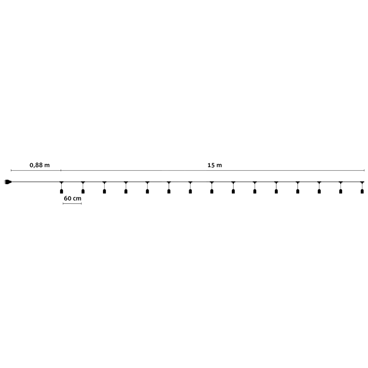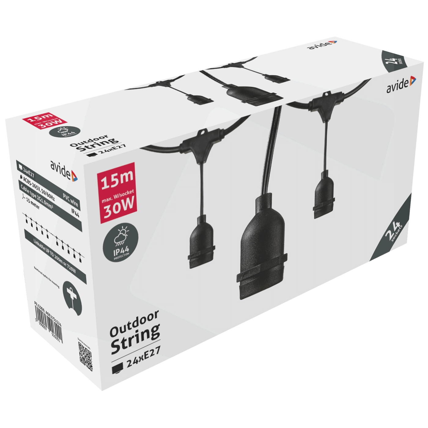 Avide Kabel sa 24 sijaličnih grla E27, dužina 15 met., Outdoor - Outdoor E27 String 15m