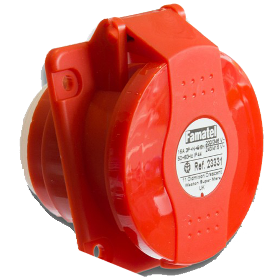 Utičnica kutna 10°, panelna, 16A, 380÷415VAC, Frekvencija 50-60Hz, 5 Polna (3P+N+E), PIN lokacija 6H, IP44, crvena boja.
