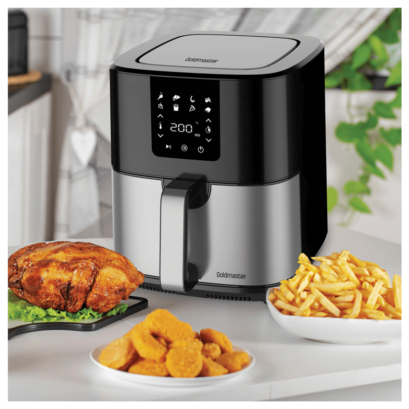 GoldMaster Crispy friteza na vrući zrak ispeći će vašu hranu s maksimalnim okusom koristeći minimalno ili bez ulja. Dizajniran za vas da pripremate zdravu i ukusnu hranu, Goldmaster Airfryer pruža jednostavnu upotrebu s 8 različitih pametnih postavki kuhanja.