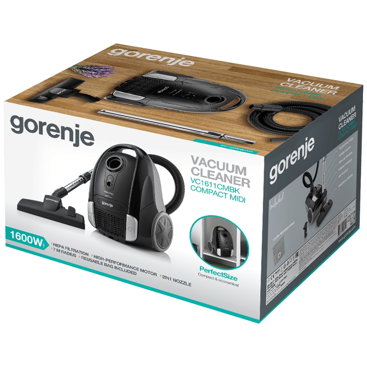 Gorenje Usisavač sa vrećicom, 1600 W, COMPACT MIDI - VC1611CMBK