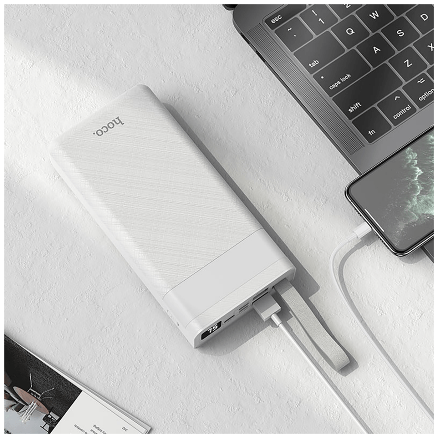 hoco. Punjač prijenosni sa lampom, Hoco j73, 30000mAh, 2A / 2A - J73 Powerful, White