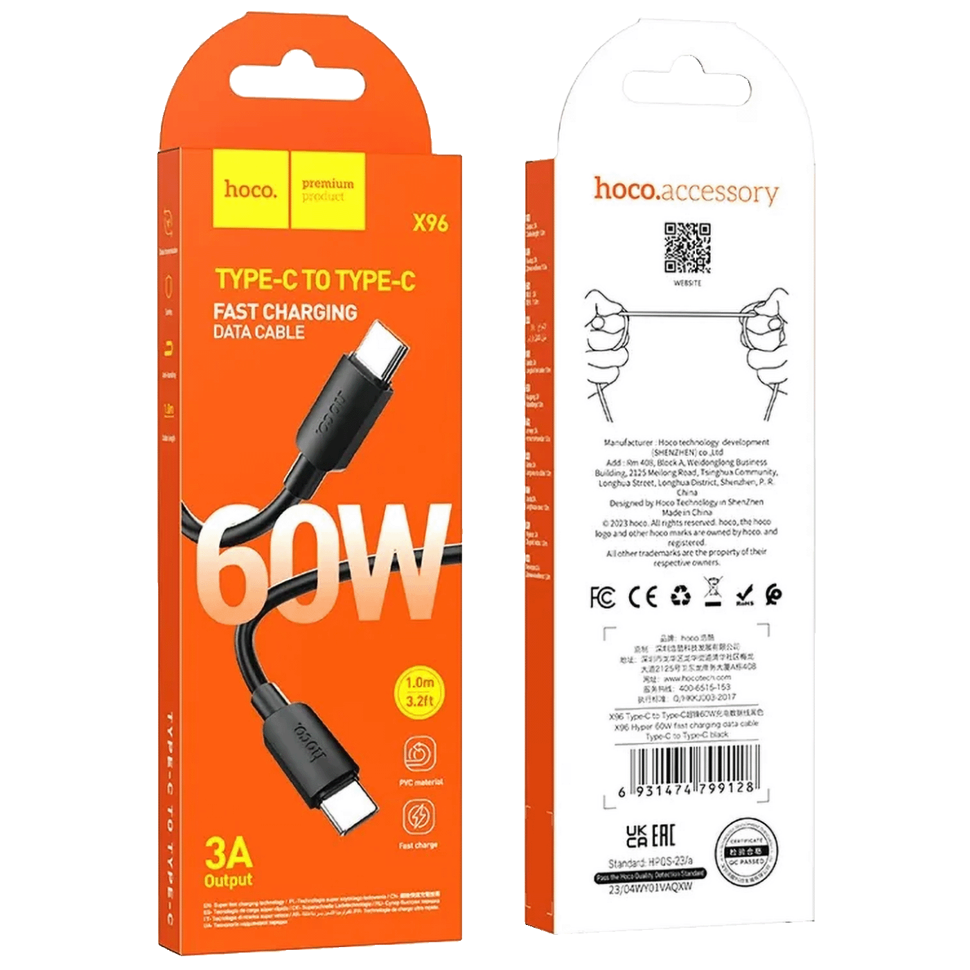 hoco. USB kabl za smartphone, type C, 60W, crna - X96 Hyper, 60W, Black