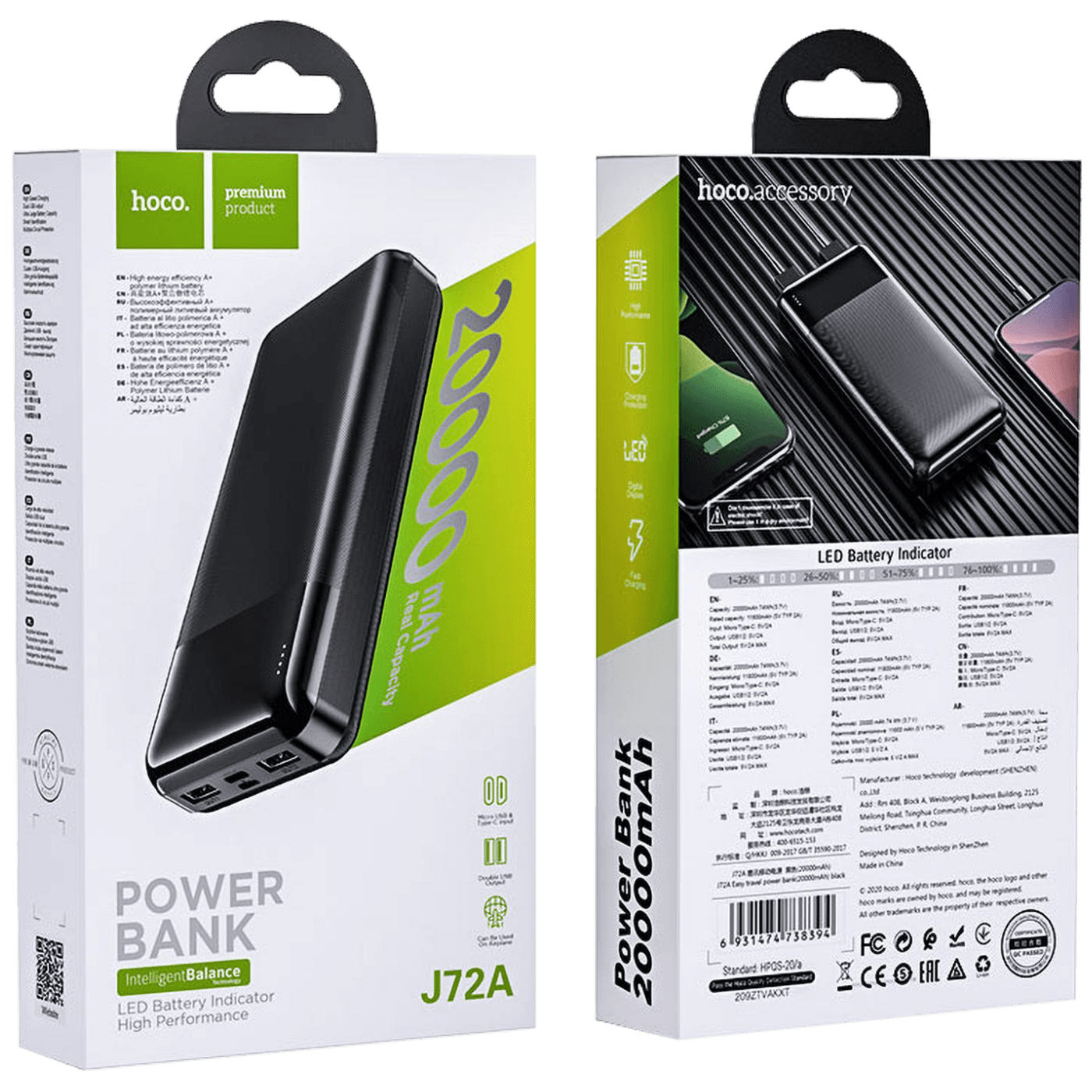 hoco. Punjač prijenosni za mobitele, 20000 mAh, 2A / 2A - J72A Easy travel