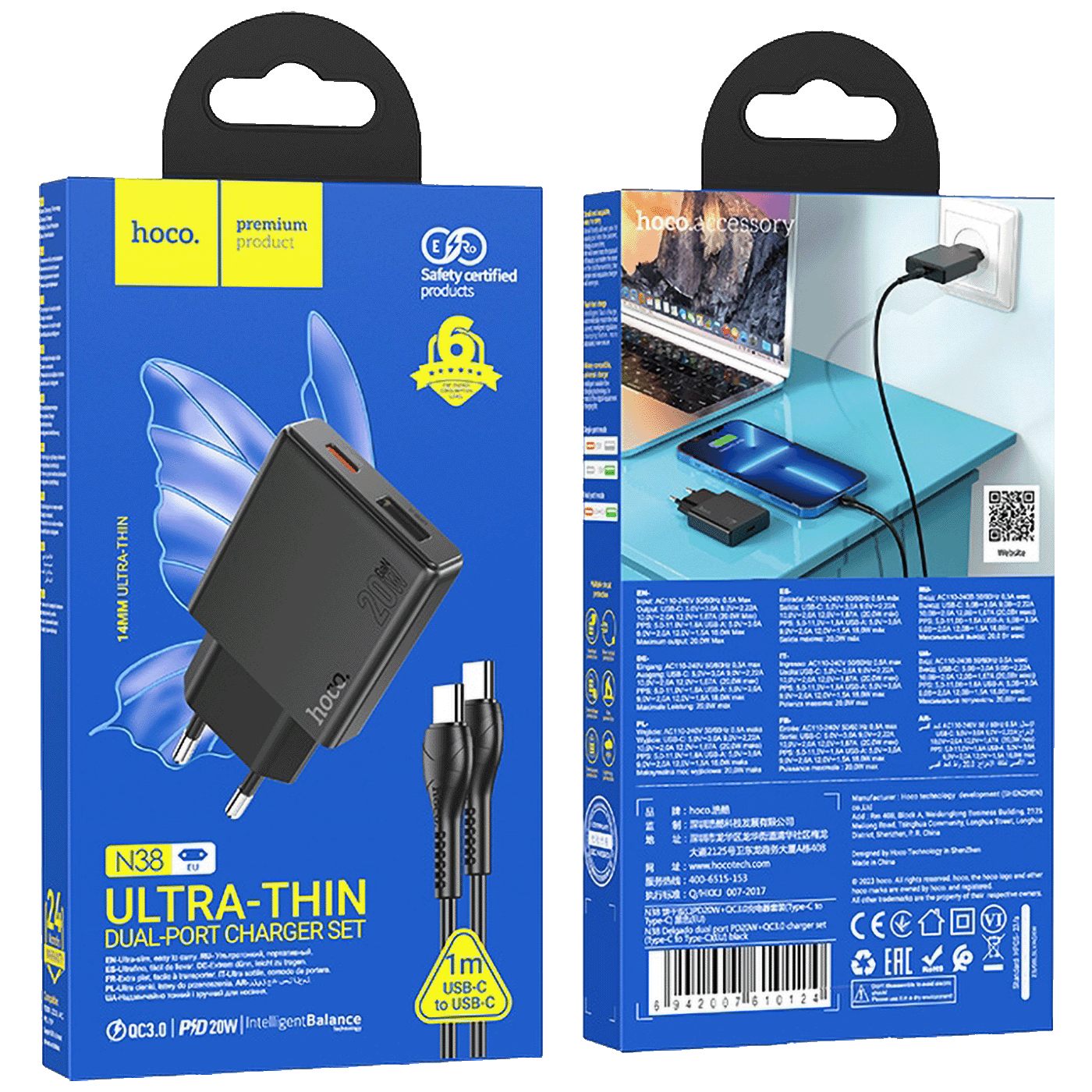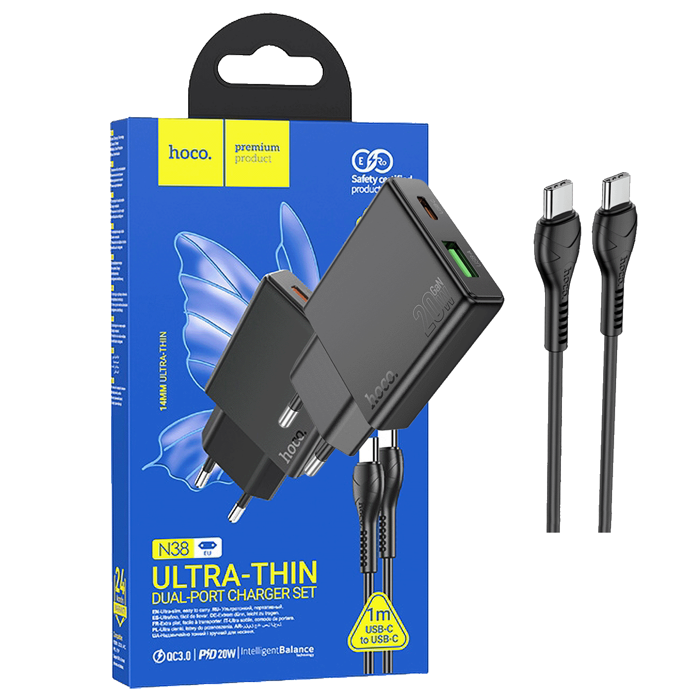 hoco. Punjač kućni sa type C kabelom, brzi, PD20W, QC3.0 - N38 Delgado type C