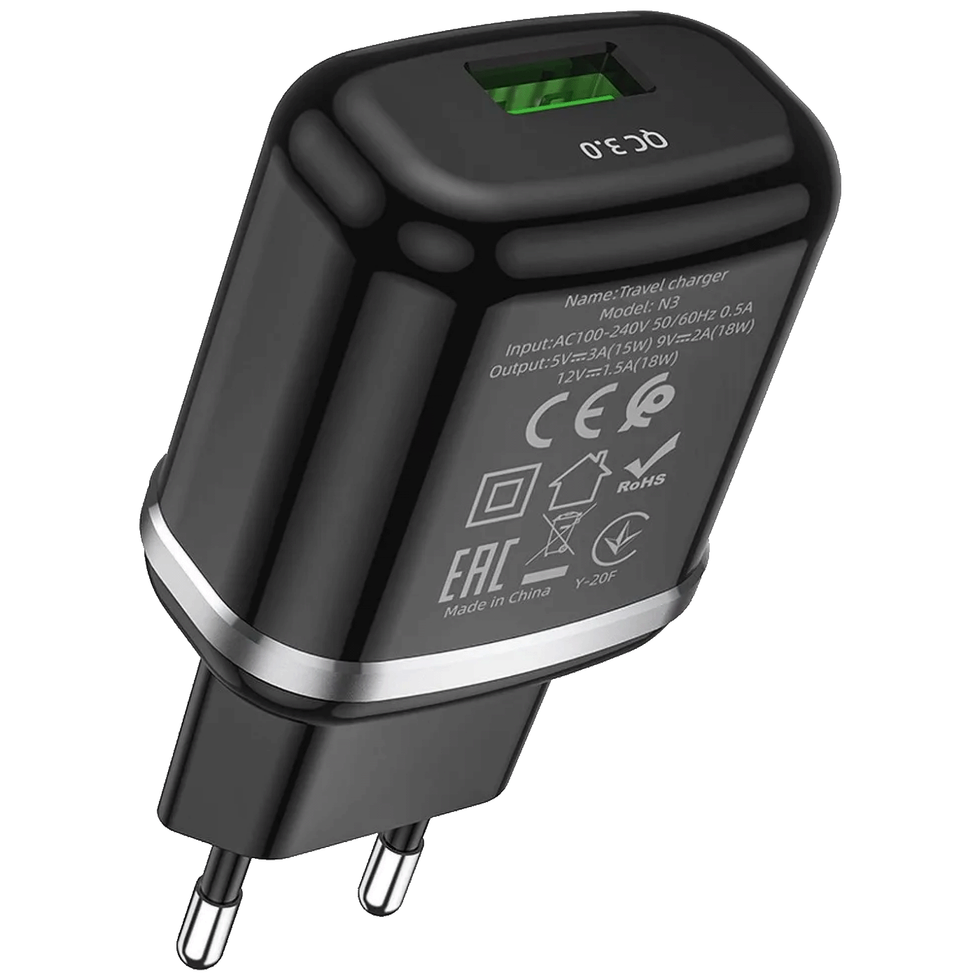 Moderan i kompaktan mrežni punjač savršen za brzo punjenje vaših uređaja. Opremljen USB priključkom, podržava QC 3.0 tehnologiju za brže napajanje.