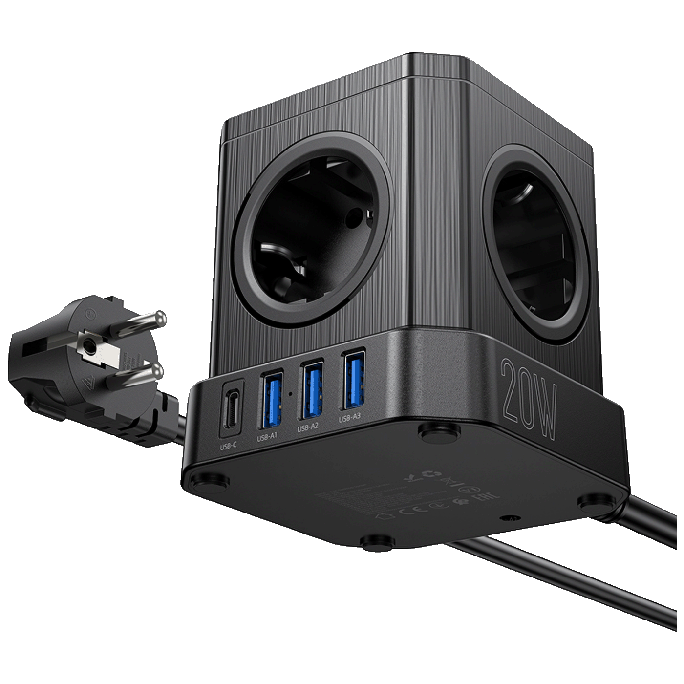 hoco. Produžni kabl, 5 utičnica, 3 x USB, 1 x USB C PD20W, 2 met. - NS8 Sharp