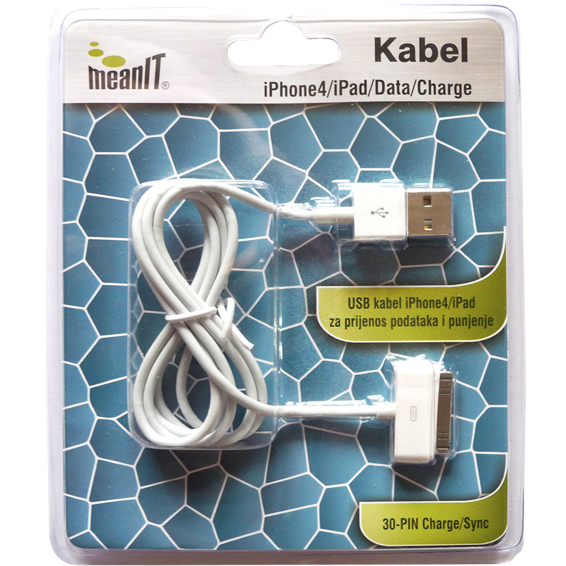 MeanIT USB kabl za Iphone 3 / 4, dužina 1.0 metar, bijeli - KABEL ZA IPHONE 3 / 4