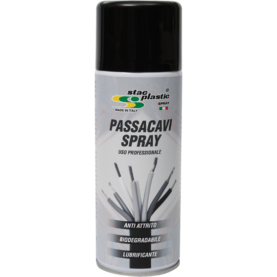 Sprej, lubrikant za podmazivanje, primjenjuje se u području industrije, olakšava ugradnju energetskih kabela, uvođenje kabela u plastične cijevi ili beton. Doza "na ruci" je dovoljna da kablovi budu savršeno podmazani i skliski, pojednostavljuje prolaz vodova kroz cijevi, do 80% se umanjuje trenje, sprječava se rizik od oštećenja kabela za vrijeme umetanja i povlačenja, olakšava prolaz čak i na mjestima s uskim zavojima. Proizvod je biorazgradiv, bez mirisa, ne sadrži zapaljiva otapala ili elemente koje oštećuju cijevi ili kabele.