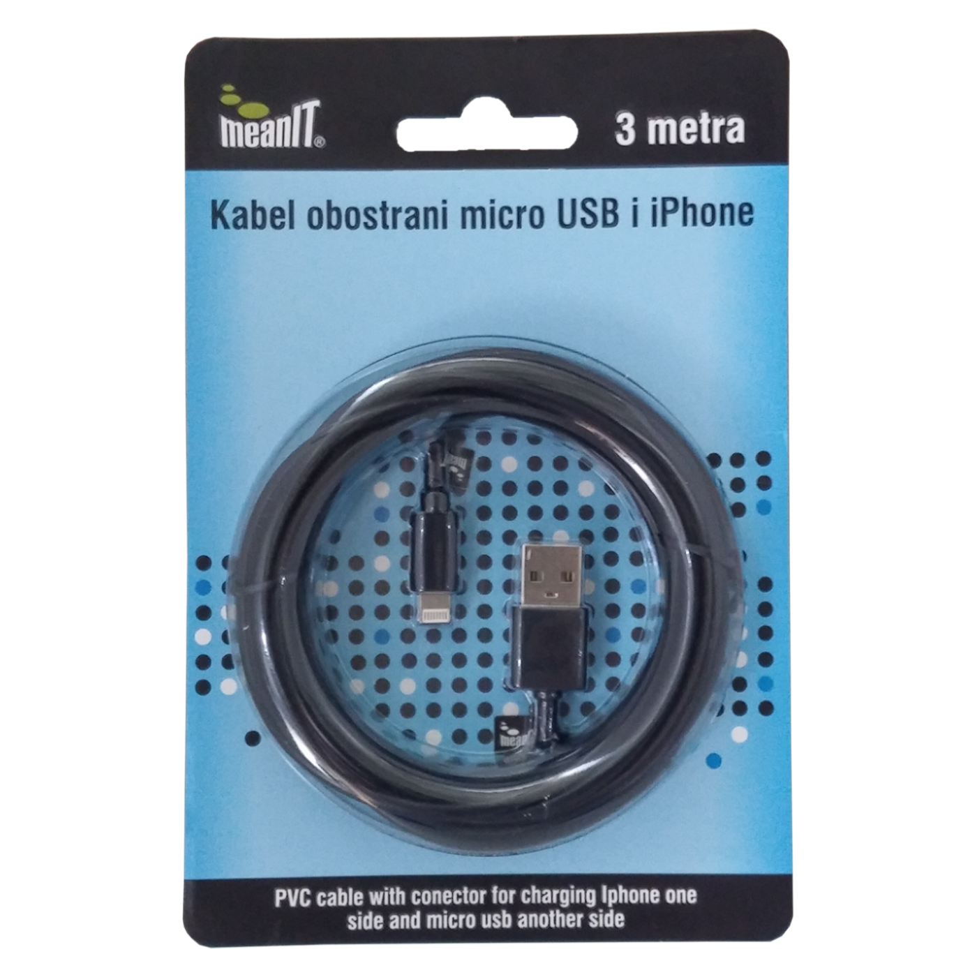 MeanIT USB kabl sa micro USB i iPhone priključkom, 3 met - KABEL MICROUSB / iPHONE