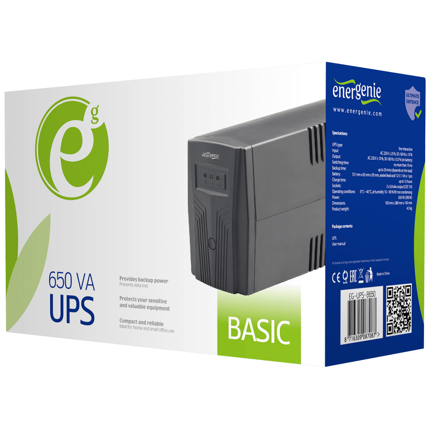 Gembird UPS/ Izvor neprekidnog napajanja, 650VA - EG-UPS-B650