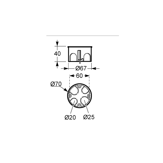 Razvodna kutija rigips, dimenzija Ø67x39 mm, IP30.