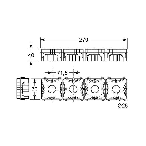 Razvodna kutija podžbuk, dimenzija 66x66, IP30.
