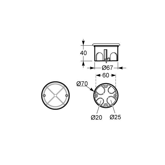 Razvodna kutija rigips, dimenzija 67x39, IP30, bijeli poklopac sa vijcima.