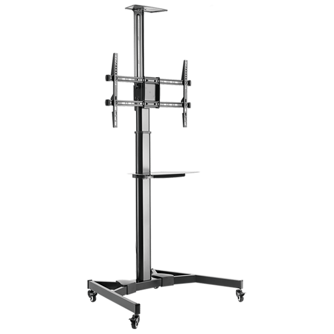 Stalak za TV prijemnike 37" - 70", maksimalno opterećenje 50 kg., VESA 200 x 200, 600 x 400, nagib + / - 10°, polica za AV uređaj 430 x 335 mm nosivosti 5 kg., polica za kameru 285 x 150 mm, kotačići za lakše pomjeranje, pribor za montažu
